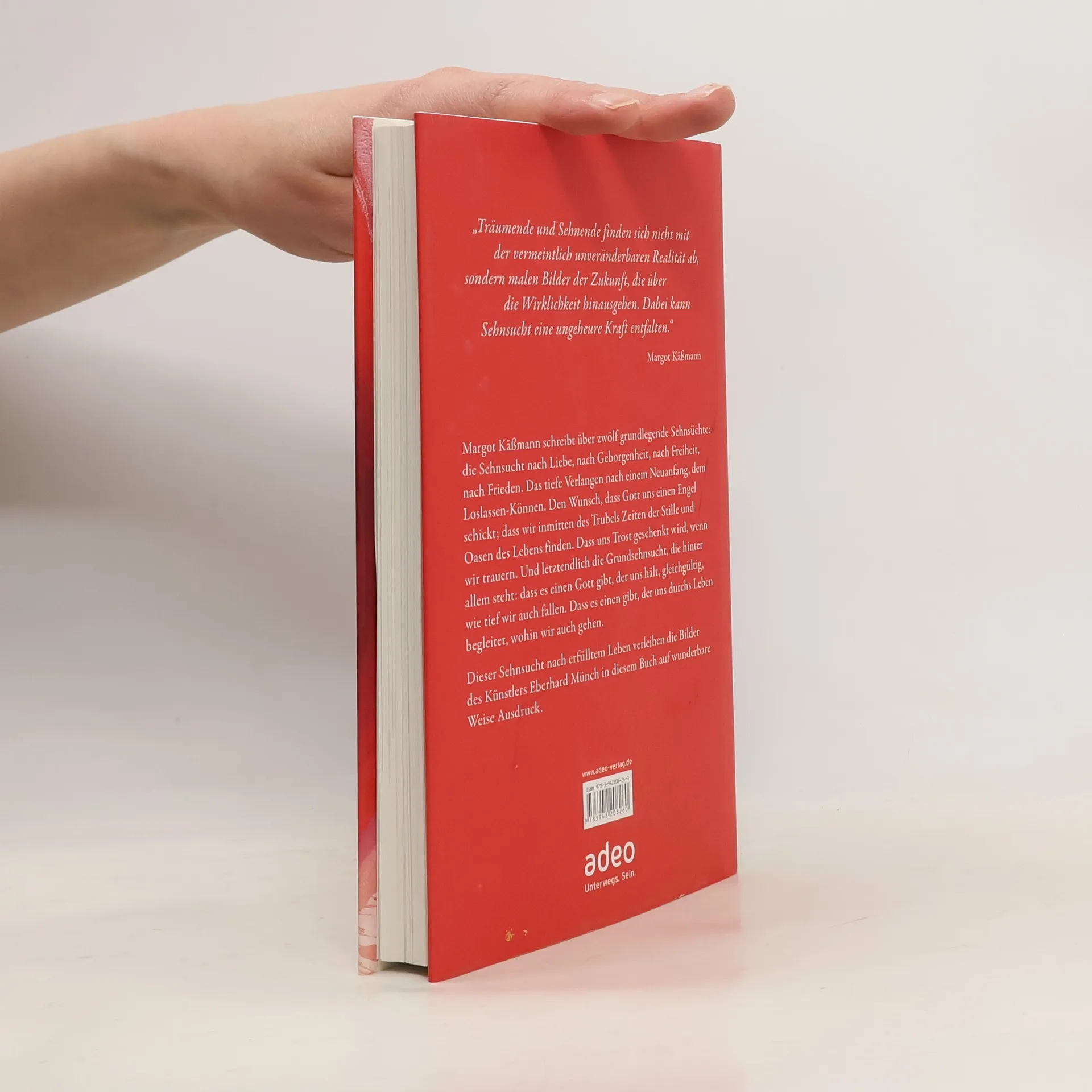 Margot Käßmann schreibt über zwölf grundlegende Sehnsüchte: die Sehnsucht nach Liebe, nach Geborgenheit, nach Freiheit, nach Frieden. Das tiefe Verlangen nach einem Neuanfang, dem Loslassen-Können. Den Wunsch, dass Gott uns einen Engel schickt; dass wir inmitten des Trubels Zeiten der Stille und Oasen des Lebens finden. Dass uns Trost geschenkt wird, wenn wir trauern. Und letztendlich die Grundsehnsucht, die hinter allem steht: dass es einen Gott gibt, der uns hält, egal, wie tief wir auch fallen. Dass es einen gibt, der uns durchs Leben begleitet, wohin wir auch gehen. Die im Buch enthaltenen Bilder des Künstlers Eberhard Münch, dessen Werk Margot Käßmann besonders schätzt, spiegeln das Verlangen nach einer anderen Welt. „Die Sehnenden sind wie die Träumenden. Sie denken über Grenzen hinaus. Sie malen Bilder, die über die Wirklichkeit hinausgehen. Sie finden sich nicht ab mit der vermeintlich unveränderbaren Realität. Dabei kann Sehnsucht eine ungeheure Kraft entfalten.“ Margot Käßmann