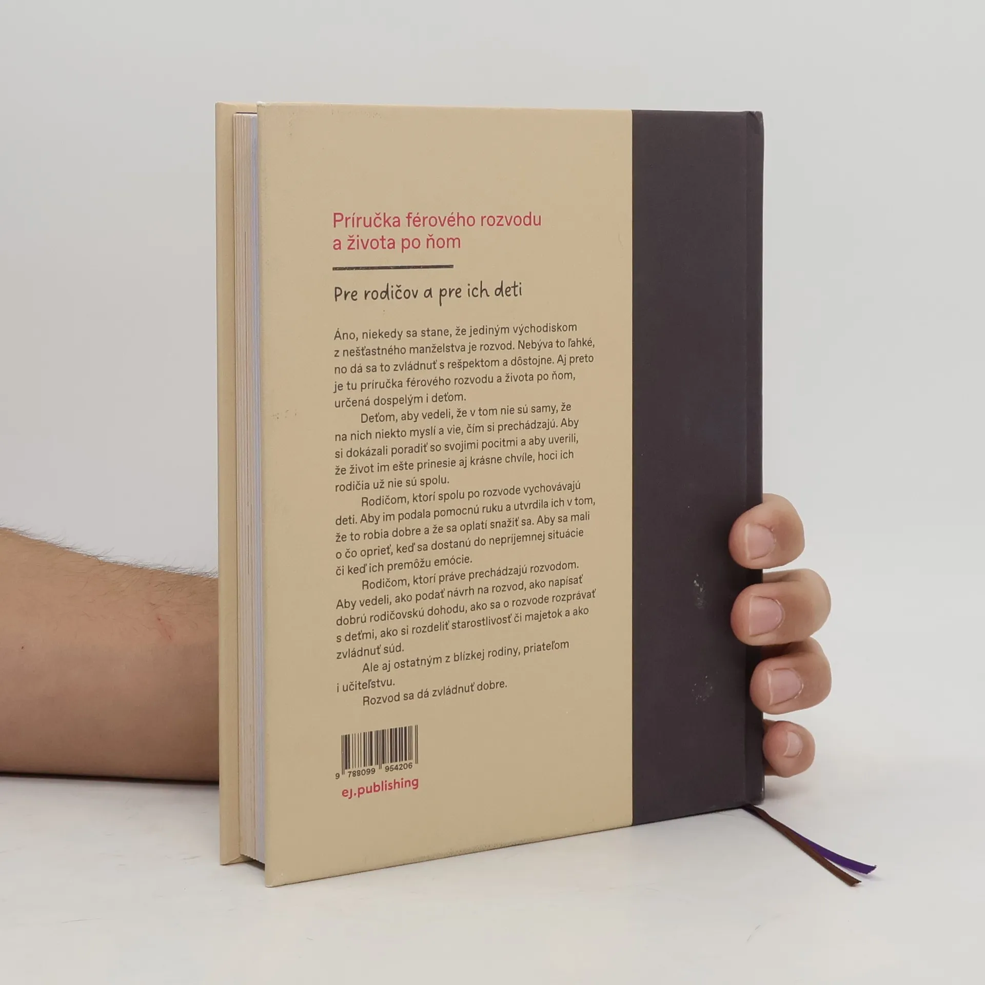 Príručka férového rozvodu a života po ňom. Áno, niekedy sa stane, že jediným východiskom z nešťastného manželstva je rozvod. Nebýva to ľahké, no dá sa to zvládnuť s rešpektom a dôstojne. Môže vám pri tom pomôcť príručka férového rozvodu a života po ňom, určená dospelým aj deťom:Deťom, aby vedeli, že v tom nie sú samy, že na nich niekto myslí a vie, čím si prechádzajú. Aby si dokázali poradiť so svojimi pocitmi a aby uverili, že život im prinesie aj krásne chvíle, i keď ich rodičia už nechcú byť spolu.Rodičom, ktorí spolu po rozvode vychovávajú deti. Aby im podala pomocnú ruku a utvrdila ich v tom, že to robia dobre a že sa oplatí snažiť sa. Aby sa mali o čo oprieť, keď sa dostanú do nepríjemnej situácie, či keď ich premôžu emócie.Rodičom, ktorí práve prechádzajú rozvodom. Aby vedeli, ako podať návrh na rozvod, ako napísať dobrú rodičovskú dohodu, ako sa o rozvode rozprávať s deťmi, ako si rozdeliť starostlivosť či majetok, a ako zvládnuť súd.Ale aj ostatným z blízkej rodiny, priateľom i učiteľstvu. Rozvod sa dá zvládnuť dobre.Ponúkame vám dve knihy v jednej: jedna je určená deťom, druhá dospelým. Autorky knihu tvorili spolu s ďalšími odborníkmi a odborníčkami z oblasti psychológie, práva či školstva.