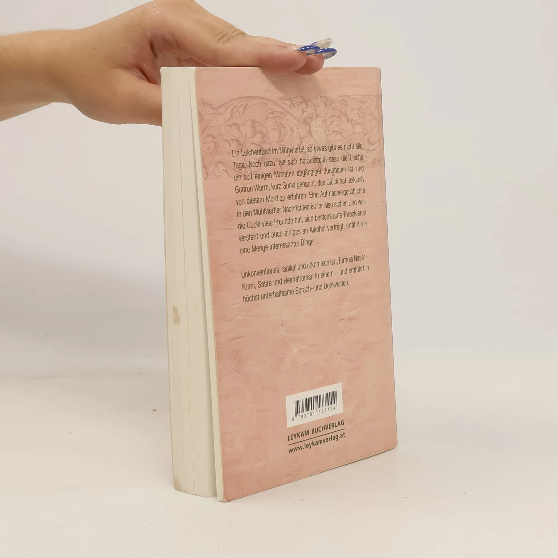 Eigentlich ist Redakteurin bei den Mühlviertler Nachrichten nicht unbedingt der Traumberuf von Gudrun Wurm, kurz Gucki genannt, und die Wartezeit für den Karrieresprung nach Wien – oder zumindest weg aus der Provinz – ist auch nur durch die feuchtfröhlichen Tarockabende mit den Nachbarsbuben – allesamt gestandene Mannsbilder – halbwegs erträglich. Doch da bricht die brutale Wirklichkeit in die ländliche Idylle, als die Leiche des Jungbauern Harald Baum gefunden wird, der rund ein halbes Jahr zuvor unter mysteriösen Umständen verschwunden war. Ist das die erhoffte Chance für Gucki? Sie beginnt auf eigene Faust zu ermitteln und stößt nicht nur auf eine weitere Leiche eines anderen Jungbauern, sondern gerät auch selbst ins Visier von Polizei und Mörder. Unkonventionell, radikal und urkomisch lässt Franz Friedrich Altmann ein ländliches Sittenbild erstehen und schafft mit Turrinis Nase nicht nur einen neuen Heimatroman, sondern auch einen Krimi, der in höchst unterhaltsame Sprachund Denkwelten entführt.