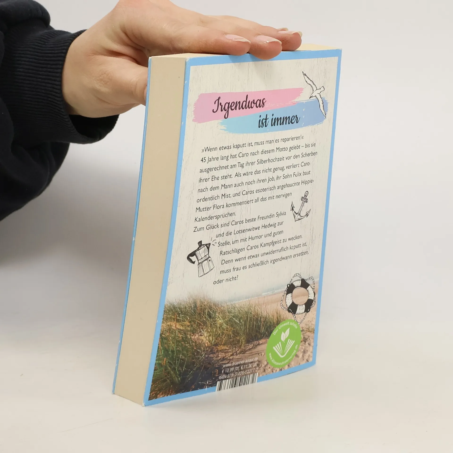 Mit Herz & Humor gegen die Widrigkeiten des Lebens: ein Wohlfühl-Roman von Spiegel-Bestsellerautorin Gabriella Engelmann. Caro Oldendorff hat 45 Jahre lang nach dem Motto gelebt: „Wenn etwas kaputt ist, muss man es reparieren!“ Doch an ihrem Silber-Hochzeitstag steht die Hamburgerin plötzlich vor den Scherben ihrer Ehe. Das Unglück nimmt kein Ende: Sie verliert ihren Mann, ihren Job, und ihr 15-jähriger Sohn Felix sorgt für Ärger. Zudem kommentiert ihre esoterisch angehauchte Hippie-Mutter die Situation mit nervigen Kalendersprüchen. Glücklicherweise stehen Caros beste Freundin Sylvia und die Lotsenwitwe Hedwig bereit, um mit Humor und guten Ratschlägen ihren Kampfgeist zu wecken. Denn wenn etwas unwiderruflich kaputt ist, muss man es schließlich irgendwann ersetzen, oder nicht? Engelmann verfasst warmherzige Wohlfühl-Romane über Frauen, die man sich als beste Freundinnen wünscht. In dieser Geschichte wird Humor großgeschrieben, denn das Leben ist viel zu kurz, um Trübsal zu blasen. Entdecken Sie die zauberhaften Roman-Welten von Gabriella Engelmann, darunter die „Büchernest“-Serie, die Föhr-Serie, die Villa-Serie sowie weitere Wohlfühl-Romane und Anthologien, die zum Schmunzeln und Träumen einladen.
