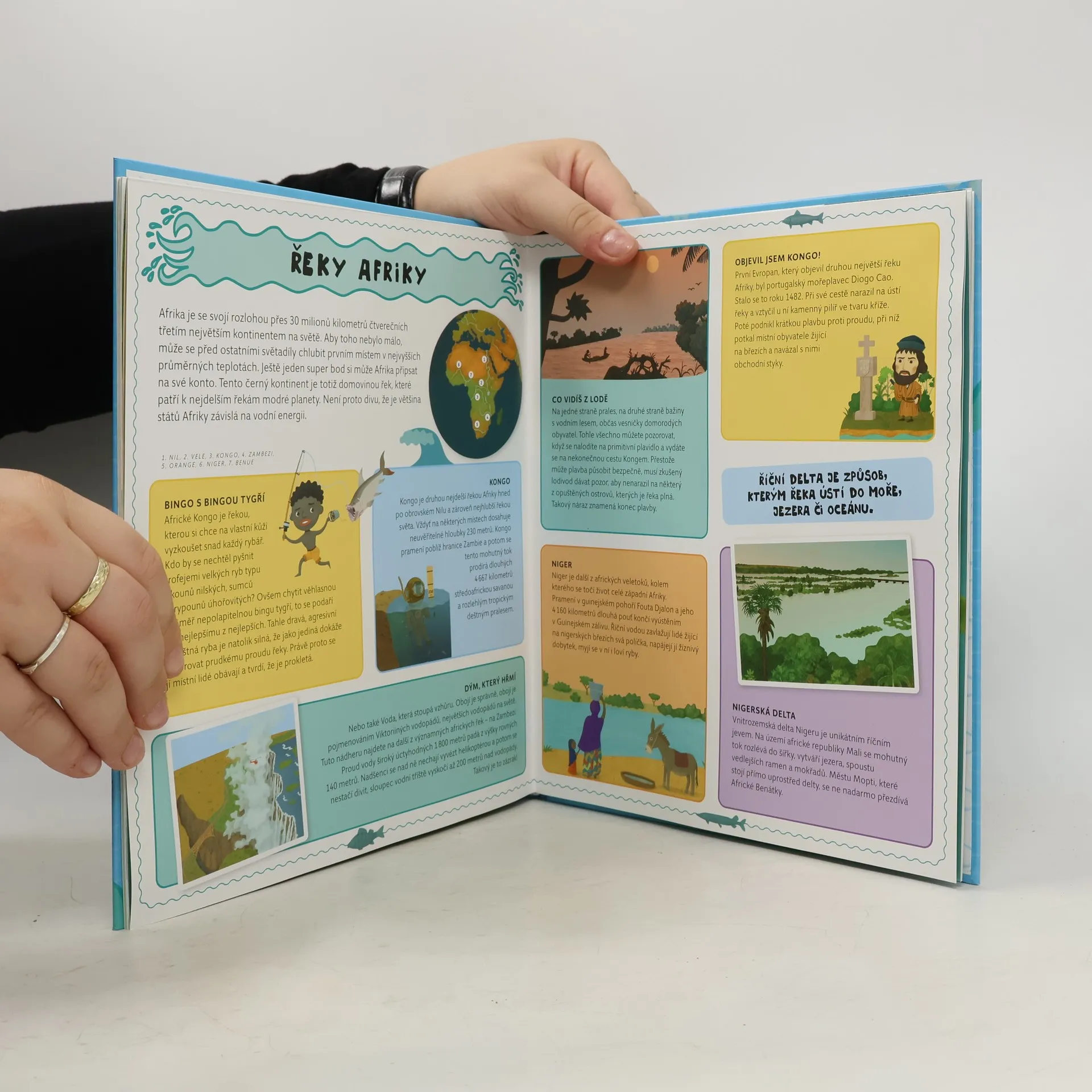 Pokud byste se podívali z výšky, viděli byste, že je naše planeta doslova protkána stuhami řek. Řek divokých, dlouhých, prudkých, hlubokých i těch úplně mělkých. Chtěli byste se, vy všichni milovníci vody, ale i ti, kteří se s vodou zrovna nekamarádí, dozvědět, co je pro ty jednotlivé řeky typické? Jak vypadají, kdo v nich žije či kudy protékají? Které řeky jsou pro lidstvo důležité a životodárné, které jsou průzračně čisté, které hrají všemi barvami a které patří mezi řeky posvátné? Otevřete knihu tvořenou šesti rozkládacími mapami, nasedněte do kajaku, loďky nebo do člunu a vydejte se na velkou výpravu po zajímavých řekách světa.