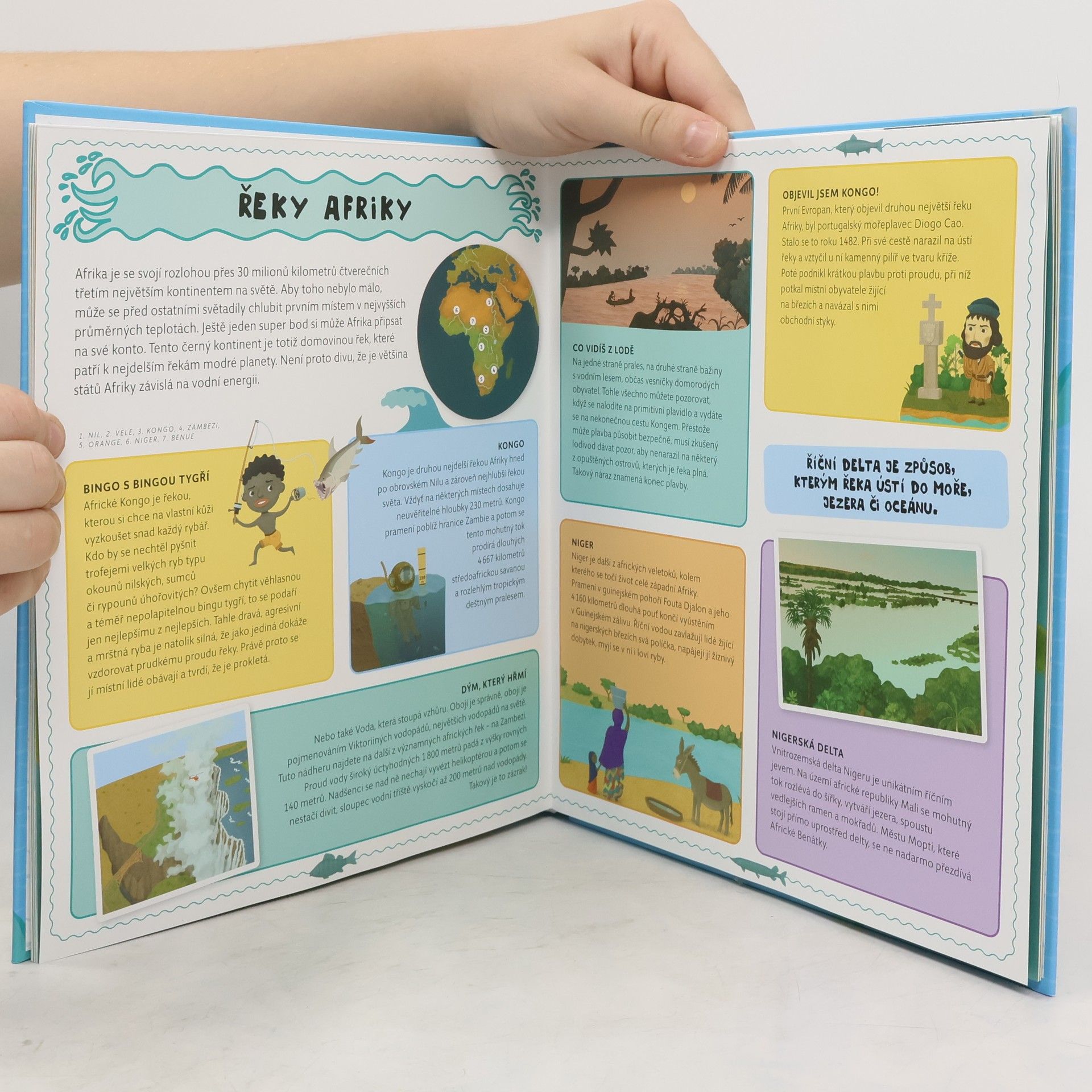 Pokud byste se podívali z výšky, viděli byste, že je naše planeta doslova protkána stuhami řek. Řek divokých, dlouhých, prudkých, hlubokých i těch úplně mělkých. Chtěli byste se, vy všichni milovníci vody, ale i ti, kteří se s vodou zrovna nekamarádí, dozvědět, co je pro ty jednotlivé řeky typické? Jak vypadají, kdo v nich žije či kudy protékají? Které řeky jsou pro lidstvo důležité a životodárné, které jsou průzračně čisté, které hrají všemi barvami a které patří mezi řeky posvátné? Otevřete knihu tvořenou šesti rozkládacími mapami, nasedněte do kajaku, loďky nebo do člunu a vydejte se na velkou výpravu po zajímavých řekách světa.