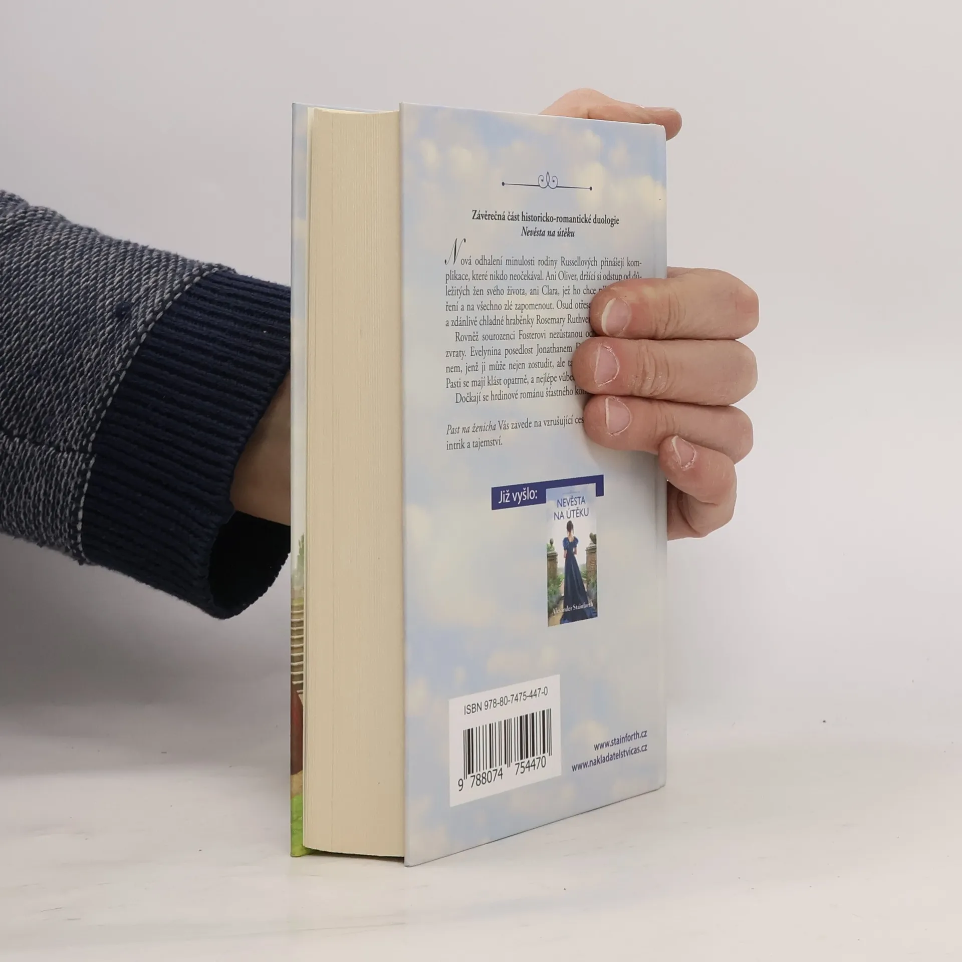 Závěrečná část historicko-romantické duologie Nevěsta na útěku.Nová odhalení minulosti rodiny Russellových přinášejí komplikace, které nikdo neočekával. Ani Oliver, držící si odstup od důležitých žen svého života, ani Clara, jež ho chce přimět k usmíření a na všechno zlé zapomenout. Osud otřese světem i svérázné a zdánlivě chladné hraběnky Rosemary Ruthvenové. Rovněž sourozenci Fosterovi nezůstanou ochuzeni o šokující zvraty. Evelynina posedlost Jonathanem Digbym vyvrcholí plánem, jenž ji může nejen zostudit, ale také jí zničit budoucnost. Pasti se mají klást opatrně, a nejlépe vůbec…. Dočkají se hrdinové románu šťastného konce? Past na ženicha vás zavede na vzrušující cestu plnou romantiky, intrik a tajemství.