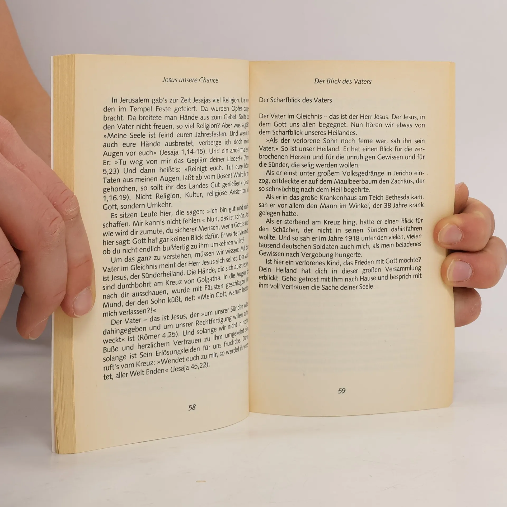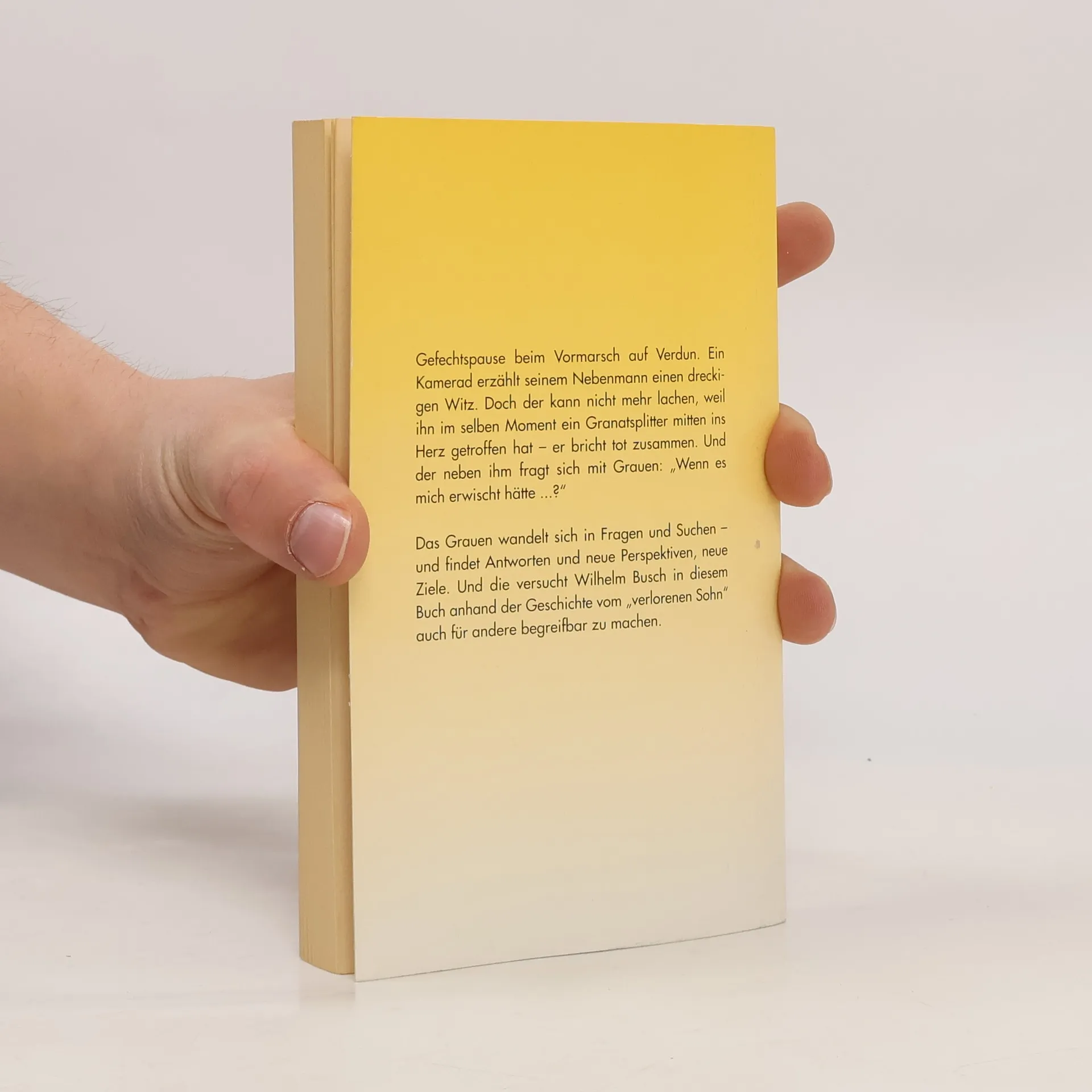 Anhand der Erzählung Jesu über den »verlorenen Sohn« aus Lukas 15 wird in 29 fortlaufenden Kurzpredigten das Evangelium leicht verständlich und anschaulich nahegebracht. Der Autor legt seinen Botschaften jeweils einen Vers aus genanntem Bibelabschnitt zugrunde. Jesus Christus gibt jedem, der sich – so wie der verlorene Sohn – zu ihm bekehrt, die Chance für einen Neuanfang in seinem Leben; das ist die zusammengefasste Botschaft dieses Buches. Ein evangelistisches Taschenbuch, das ohne Weiteres dem bekannten Titel desselben Verfassers, »Jesus unser Schicksal«, zur Seite gestellt werden kann. Auch dieses Buch richtet sich an alle, die gern wissen wollen, »was es mit Jesus auf sich hat«.