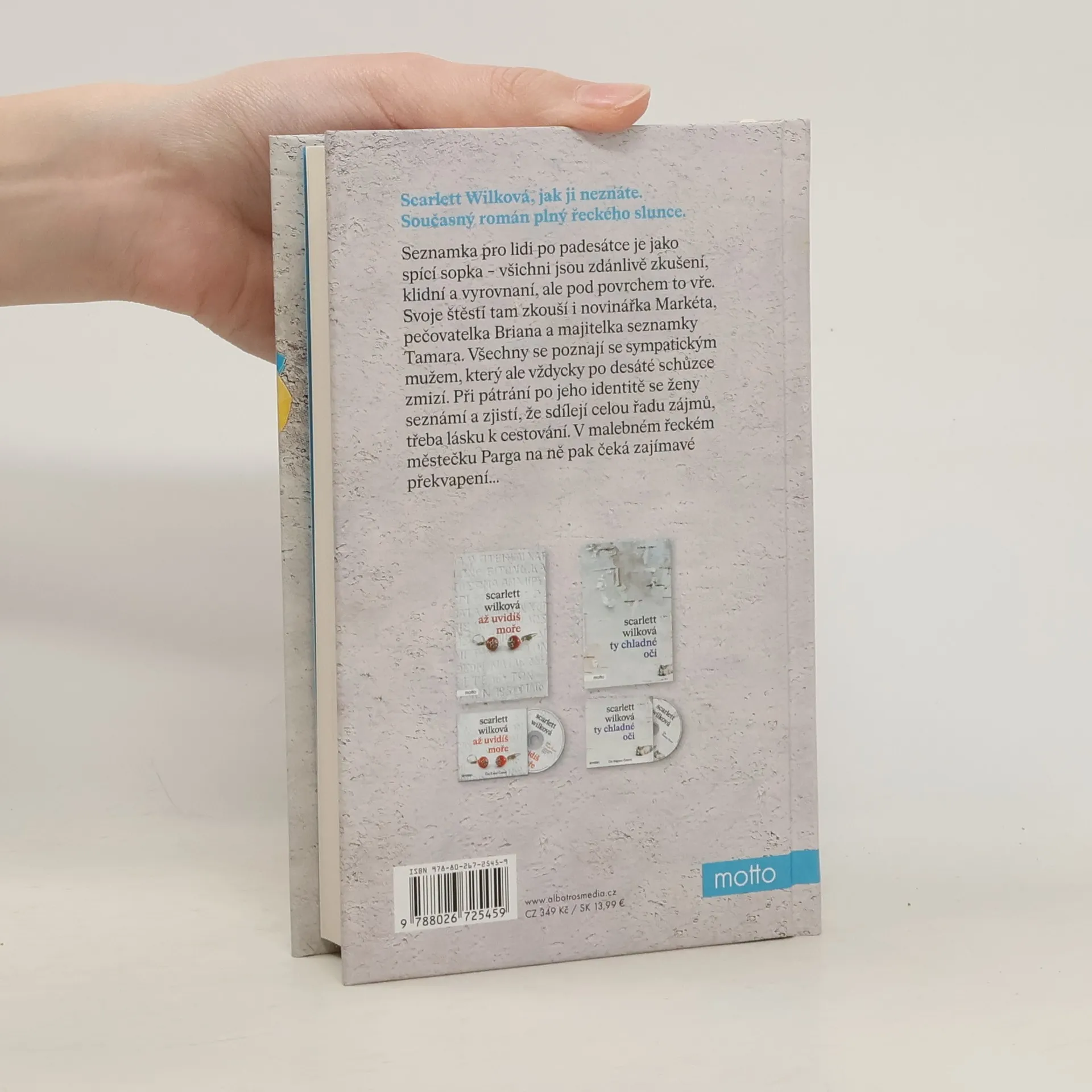 Scarlett Wilková, jak ji neznáte. Současný román plný řeckého slunce. Seznamka po padesátce je jako spící sopka – všichni jsou zdánlivě zkušení, klidní a vyrovnaní, ale pod povrchem to vře. Svoje štěstí tam zkouší i novinářka Markéta, pečovatelka Briana a majitelka seznamky Tamara. Všechny se poznají se sympatickým mužem, který ale vždycky po desáté schůzce zmizí. Při pátrání po jeho identitě se ženy seznámí a zjistí, že sdílejí celou řadu zájmů, třeba lásku k cestování. V malebném řeckém městečku Parga na ně pak čeká zajímavé překvapení...