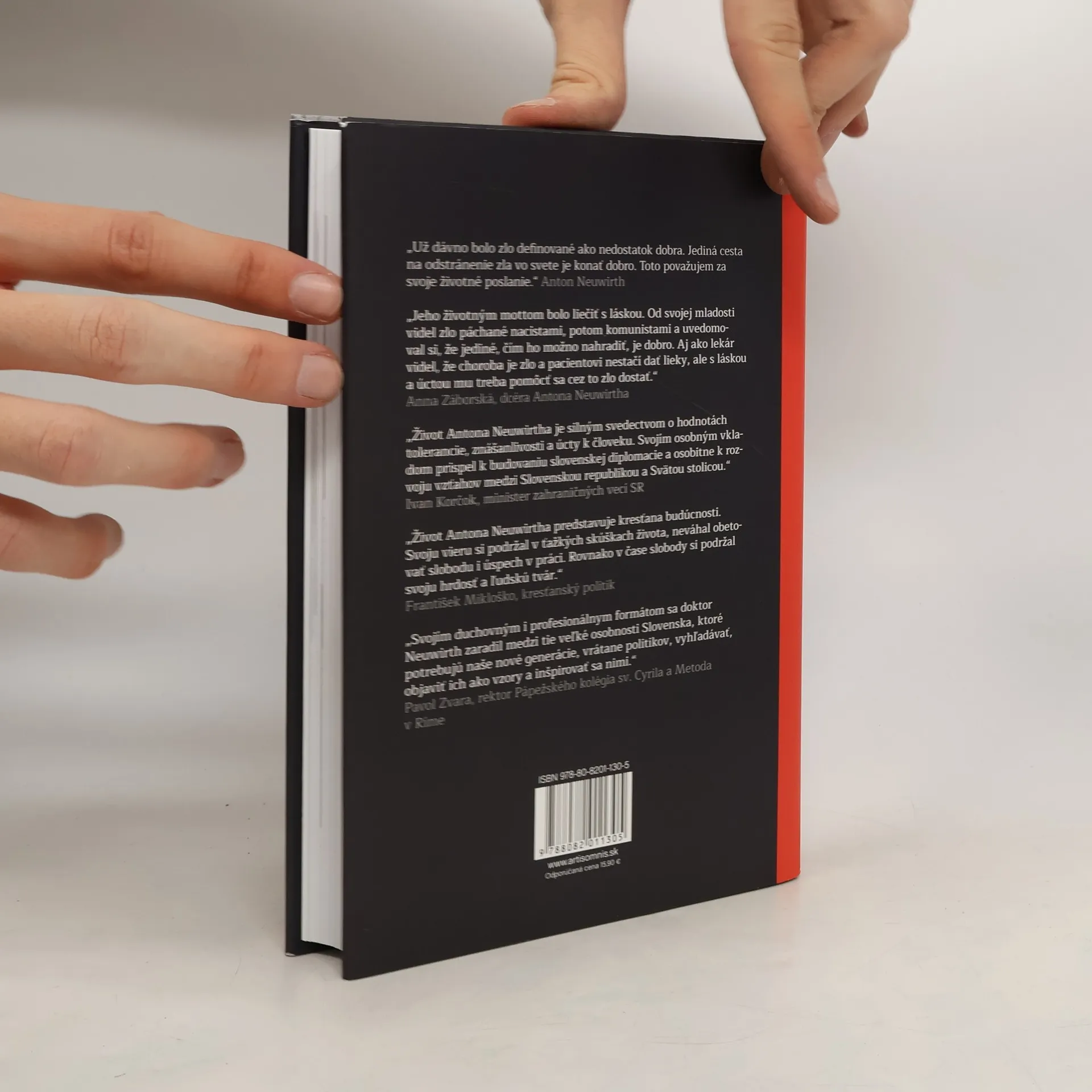 Životné osudy, spomienky a vyznania lekára, politického väzňa, mysliteľa a diplomata Antona Neuwirtha. Biografia vychádza pri príležitosti 100. výročia jeho narodenia, ktoré si v tomto roku pripomíname. Neuwirth bol v 20. storočí významnou osobnosťou slovenského verejného života. Formou rozprávania, rozhovorov a ukážok z mnohých textov kniha približuje jeho detstvo v kresťansko-židovskej rodine, štúdium medicíny a lekársku prax, prenasledovanie Štátnou bezpečnosťou a následné väznenie z politických dôvodov. Publikácia mapuje aj Neuwirthovo neskoršie pôsobenie v politike a diplomacii, keď stál pri vzniku KDH a bol prvým veľvyslancom SR pri Svätej stolici. Aktualizovaná reedícia pôvodného vydania z roku 2001 (vyd. Kalligram) obsahuje bohatú fotografickú prílohu