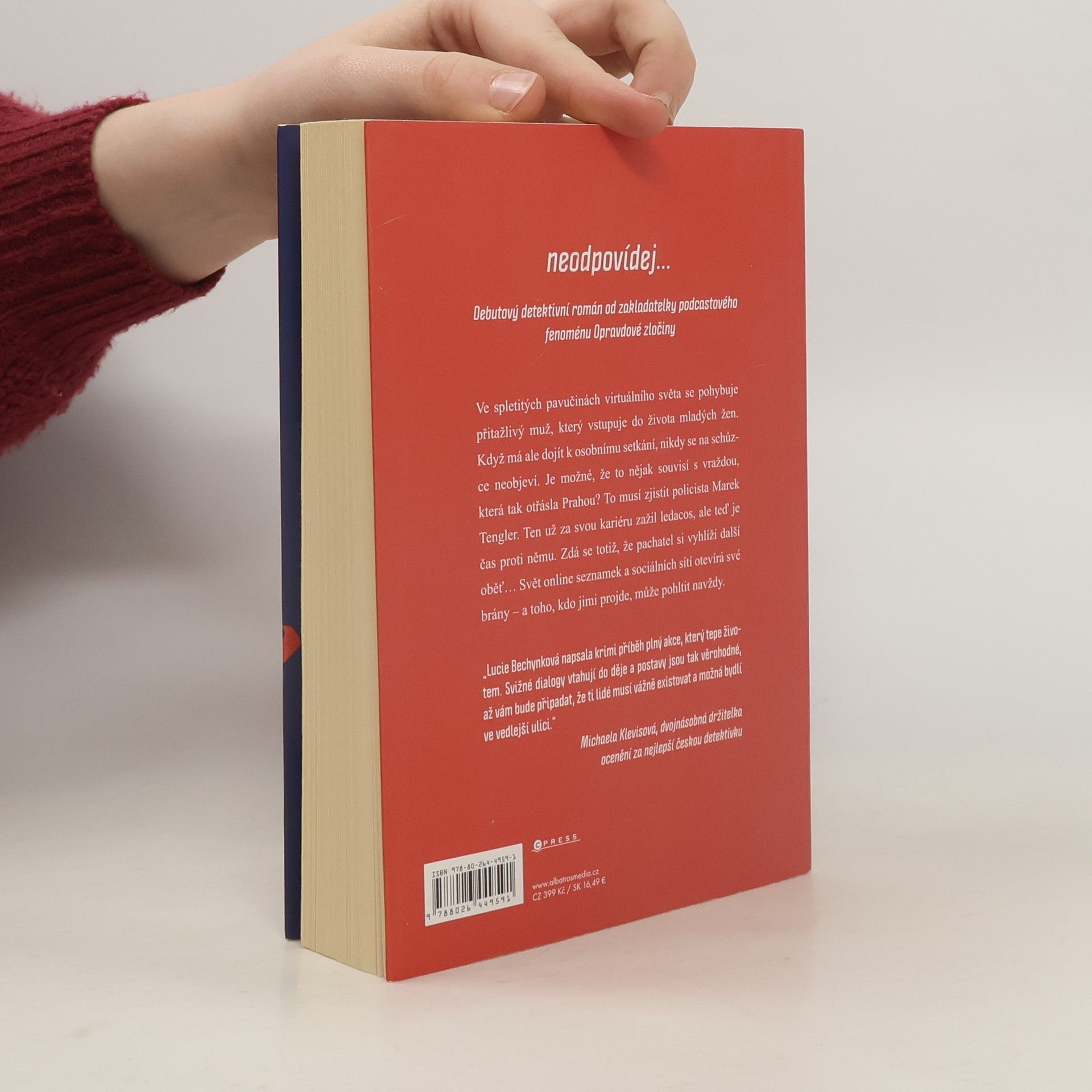 Debutový detektivní román od zakladatelky podcastového fenoménu Opravdové zločiny Ve spletitých pavučinách virtuálního světa se pohybuje přitažlivý muž, který vstupuje do života mladých žen. Když má ale dojít k osobnímu setkání, nikdy se na schůzce neobjeví. Je možné, že to nějak souvisí s vraždou, která tak otřásla Prahou? To musí zjistit policista Marek Tengler. Ten už za svou kariéru zažil ledacos, ale teď je čas proti němu. Zdá se totiž, že pachatel si vyhlíží další oběť Svět online seznamek a sociálních sítí otevírá své brány – a toho, kdo jimi projde, může pohltit navždy.