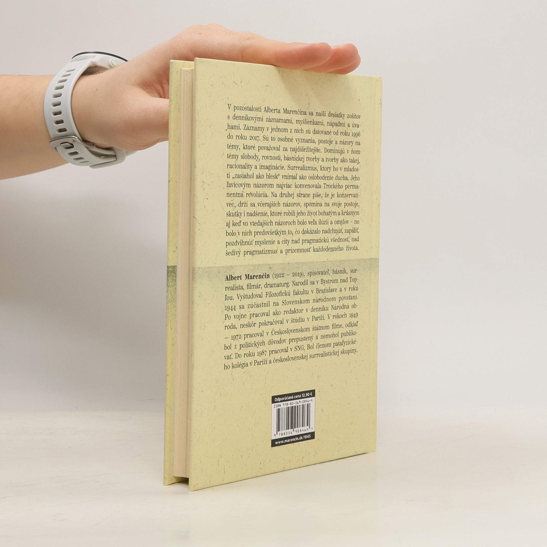 V pozostalosti Alberta Marenčina sa našli desiatky zošitov s denníkovými záznamami, myšlienky, nápady, úvahy. Jeden z nich – v koži viazaný, na krásnom papieri sa objavil len nedávno. Záznamy, ktoré si doňho zapisoval od roku 1996 až do roku 2017 sú jeho osobné vyznania, postoje názory na témy, ktoré považoval za najdôležitejšie. Dominujú témy slobody a rovnosti, básnickej tvorby a tvorby ako takej, racionality a imaginácie. Surrealizmus, ktorý ho v mladosti “zasiahol ako blesk” vnímal ako oslobodenie ducha. Jeho ľavicovým názorom najviac konvenovala Trockého permanentná revolúcia. Na druhej strane píše, že je konzervatívec, drží sa včerajších názorov, spomína na svoje postoje, skutky i nadšenie, ktoré robili jeho život bohatým a krásnym aj keď vo vtedajších názoroch bolo veľa ilúzií a omylov – no bolo v nich predovšetkým to, čo dokázalo nadchnúť, zapáliť, pozdvihnúť myslenie a city nad pragmatickú všednosť, nad šedivý pragmatizmus a prízemnosť každodenného života. Polemizuje s autormi (Rudo Sloboda, Dominik Tatarka, JurajŠpitzer), často aj sám so sebou.