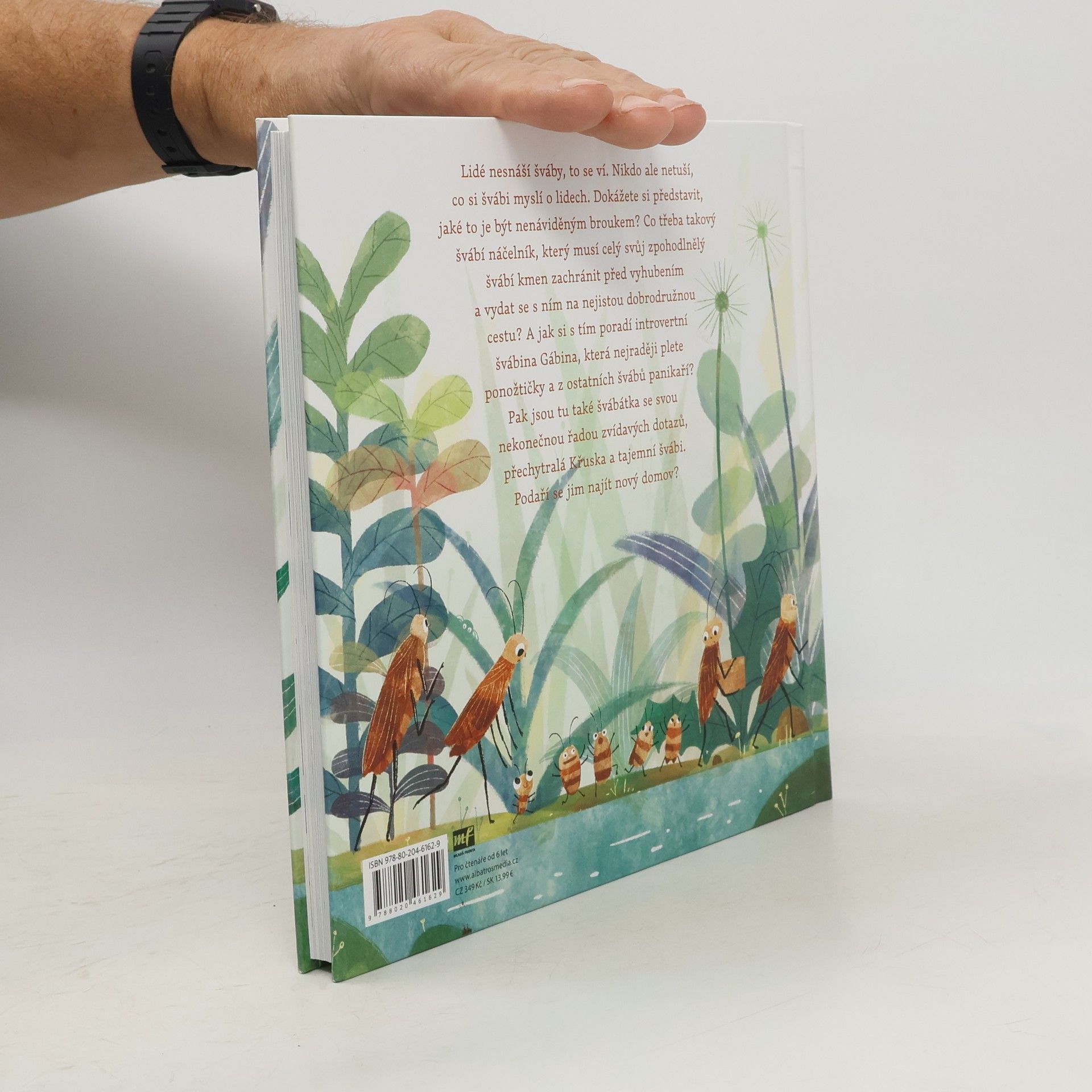 Zahoďte předsudky! Tuhle švábí partu si zamilujete!Lidé nesnáší šváby, to se ví. Nikdo ale netuší, co si švábi myslí o lidech. Dokážete si představit, jaké to je být nenáviděným broukem? Co třeba takový švábí náčelník, který musí celý svůj zpohodlnělý švábí kmen zachránit před vyhubením a vydat se s ním na nejistou dobrodružnou cestu? A jak si s tím poradí introvertní švábina Gábina, která nejraději plete ponožtičky a z ostatních švábů panikaří? Podaří se jim najít nový domov?