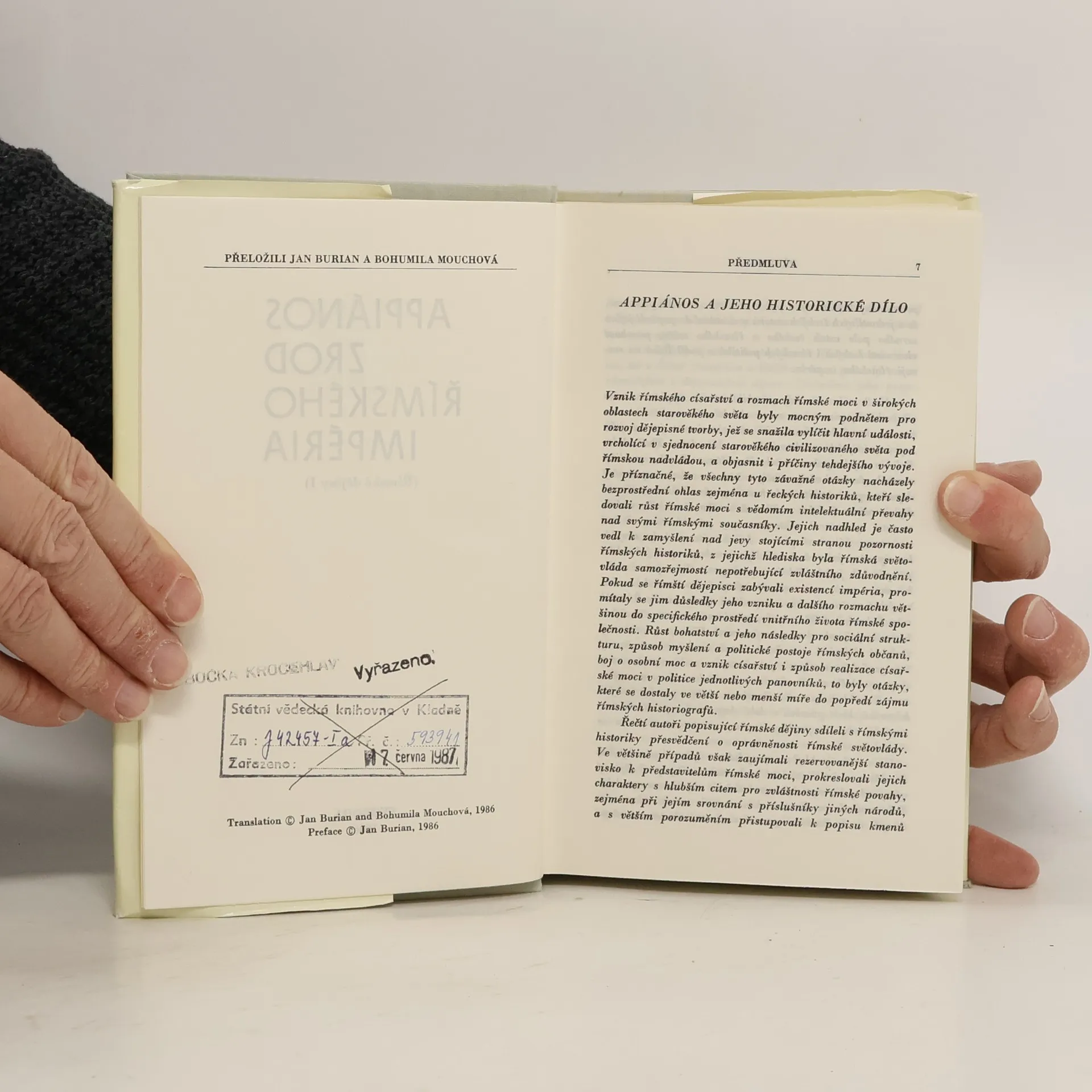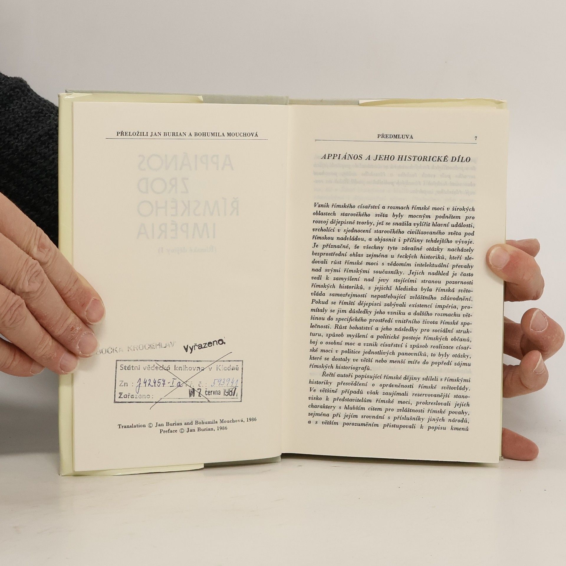 Římské dějiny I. Římské dějiny, jež sepsal ve 2. stol. n. l. řecký historik Appiános, obsáhly ve svém původním rozsahu osudy Říma od jeho legendárních počátků až po vládu císaře Triana. Tímto dílem se Appiános pokusil dát kromě jiného i odpověď na otázku, proč bylo nastolení římské nadvlády nad staromořským světem historickou nutností. Je příznačné, že hlavní příčinou spatřoval především ve vojenské převaze Říma a v diplomatických i taktických schopnostech jeho představitelů. Slabost jejich soupeřů shledával v jejich izolovanosti, a nikoli v menším vojenském nadání nebo v nedostatku osobního hrdinství a obětavosti. Tento aspekt se projevil zejména v těch částech díla, jež zachycují pronikání římské moci do různých oblastí středomořského světa. Vznik římského impéria se tak stal společným jmenovatelem řady zachovaných částí Appiánova historického spisu.