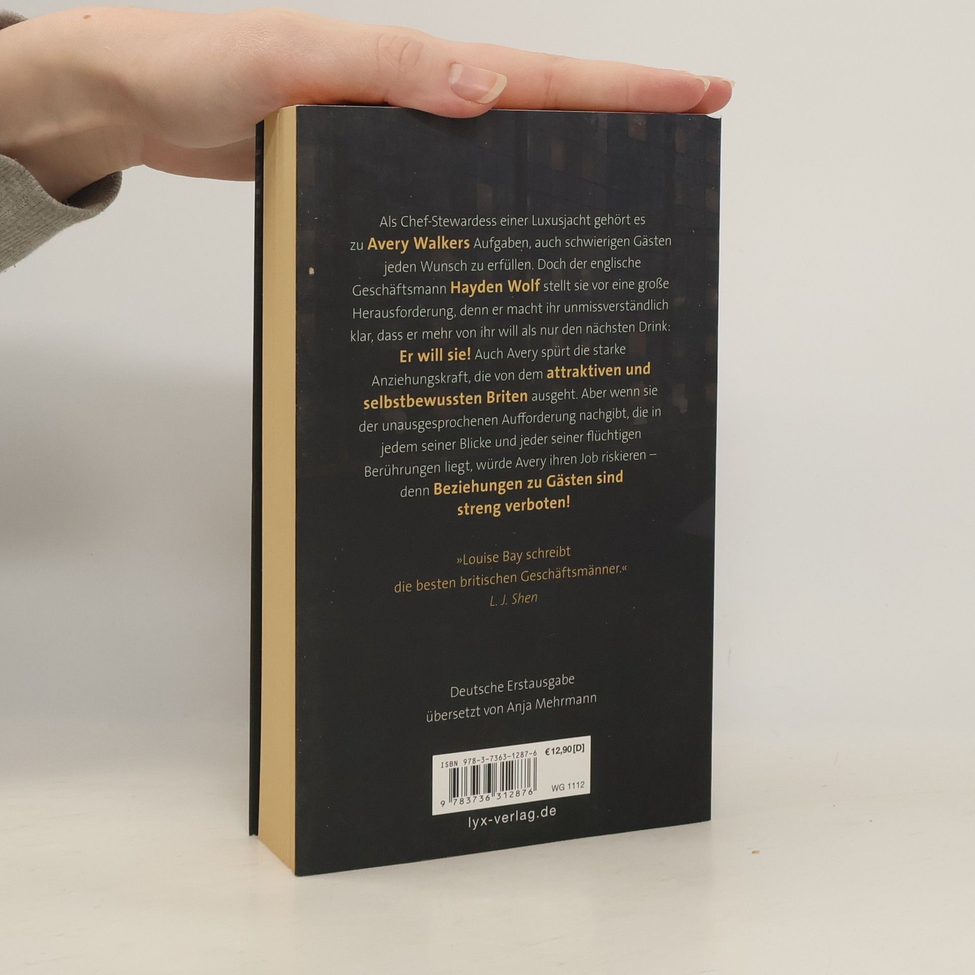 Wer die KINGS OF NEW YORK mochte, wird die KINGS OF LONDON lieben Als Chef-Stewardess einer Luxusjacht gehört es zu Avery Walkers Aufgaben, auch schwierigen Gästen jeden Wunsch zu erfüllen. Doch der englische Geschäftsmann Hayden Wolf stellt sie vor eine große Herausforderung, denn er macht ihr unmissverständlich klar, dass er mehr von ihr will als nur den nächsten Drink: Er will Sie! Auch Avery spürt die starke Anziehungskraft, die von dem attraktiven und selbstbewussten Briten ausgeht. Aber wenn Sie der unausgesprochenen Aufforderung nachgibt, die in jedem seiner Blicke und jeder seiner flüchtigen Berührungen liegt, würde Avery ihren Job riskieren - denn Beziehungen zu Gästen sind streng verboten! „Louise Bay schreibt die besten britischen Geschäftsmänner“ L. J. Shen Auftakt des KINGS-OF-LONDON-Duetts von USA-TODAY-Bestseller-Autorin Louise Bay
