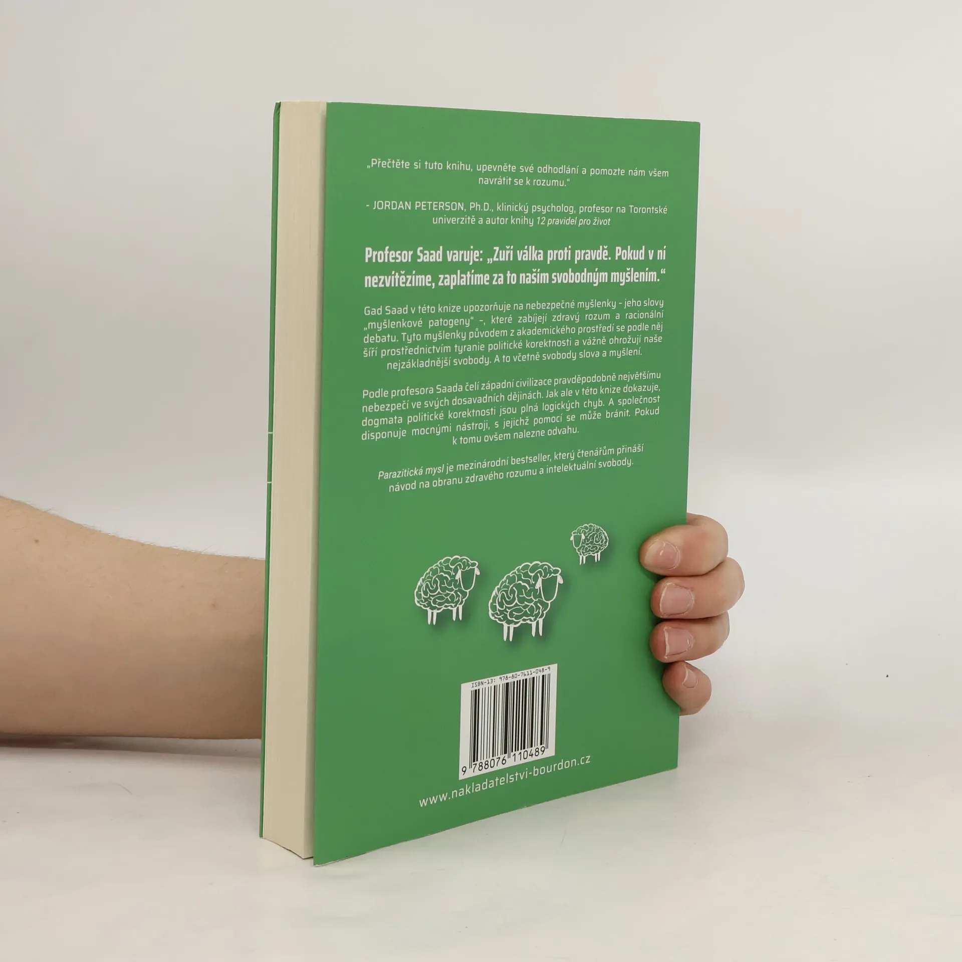 Profesor Saad varuje: „Zuří válka proti pravdě. Pokud v ní nezvítězíme, zaplatíme za to naším svobodným myšlením.“ Gad Saad v této knize upozorňuje na nebezpečné myšlenky – jeho slovy „myšlenkové patogeny“ –, které zabíjejí zdravý rozum a racionální debatu. Tyto myšlenky původem z akademického prostředí se podle něj šíří prostřednictvím tyranie politické korektnosti a vážně ohrožují naše nejzákladnější svobody. A to včetně svobody slova a myšlení. Podle profesora Saada čelí západní civilizace pravděpodobně největšímu nebezpečí ve svých dosavadních dějinách. Jak ale v této knize dokazuje, dogmata politické korektnosti jsou plná logických chyb. A společnost disponuje mocnými nástroji, s jejichž pomocí se může bránit. Pokud k tomu ovšem nalezne odvahu. Parazitická mysl je mezinárodní bestseller, který čtenářům přináší návod na obranu zdravého rozumu a intelektuální svobody.