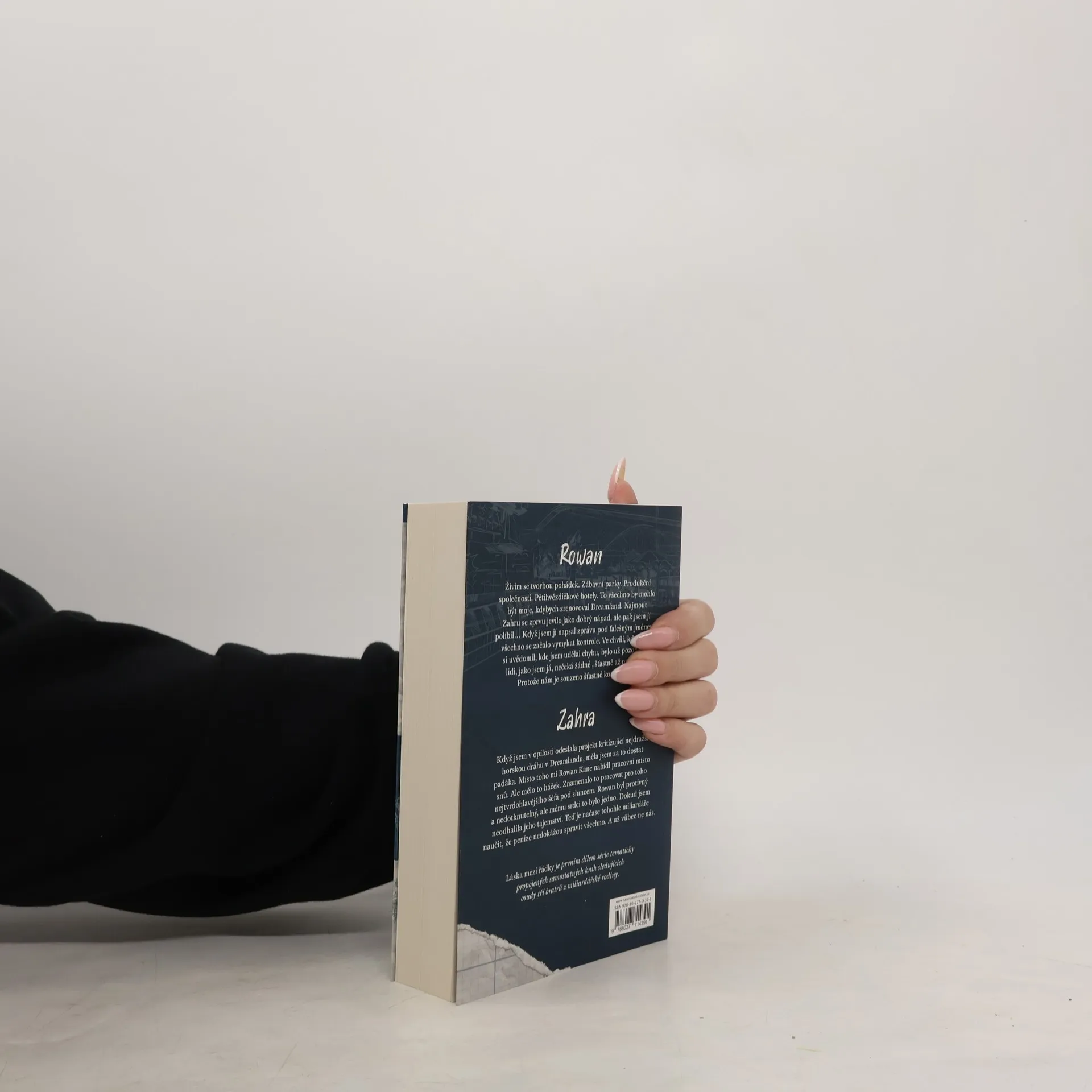 Rowan. Živím se tvorbou pohádek. Zábavní parky. Produkční společnosti. Pětihvězdičkové hotely. To všechno by mohlo být moje, kdybych zrenovoval Dreamland. Najmout Zahru se zprvu jevilo jako dobrý nápad, ale pak jsem ji políbil Když jsem jí napsal zprávu pod falešným jménem, všechno se začalo vymykat kontrole. Když jsem si uvědomil, kde jsem udělal chybu, bylo už pozdě. Na lidi, jako jsem já, nečeká žádné „šťastně až navěky“. Protože nám je souzeno šťastné konce ničit. Zahra Když jsem v opilosti odeslala projekt kritizující nejdražší horskou dráhu v Dreamlandu, měla jsem za to dostat padáka. Místo toho mi Rowan Kane nabídl pracovní místo snů. Ale mělo to háček. Znamenalo to pracovat pro toho nejtvrdohlavějšího šéfa pod sluncem. Rowan byl protivný a nedotknutelný, ale mému srdci to bylo jedno. Dokud jsem neodhalila jeho tajemství. Teď je načase tohohle miliardáře naučit, že peníze nedokážou spravit všechno. A už vůbec ne nás. Láska mezi řádky je prvním dílem série tematicky propojených samostatných knih sledujících osudy tří bratrů z miliardářské rodiny.
