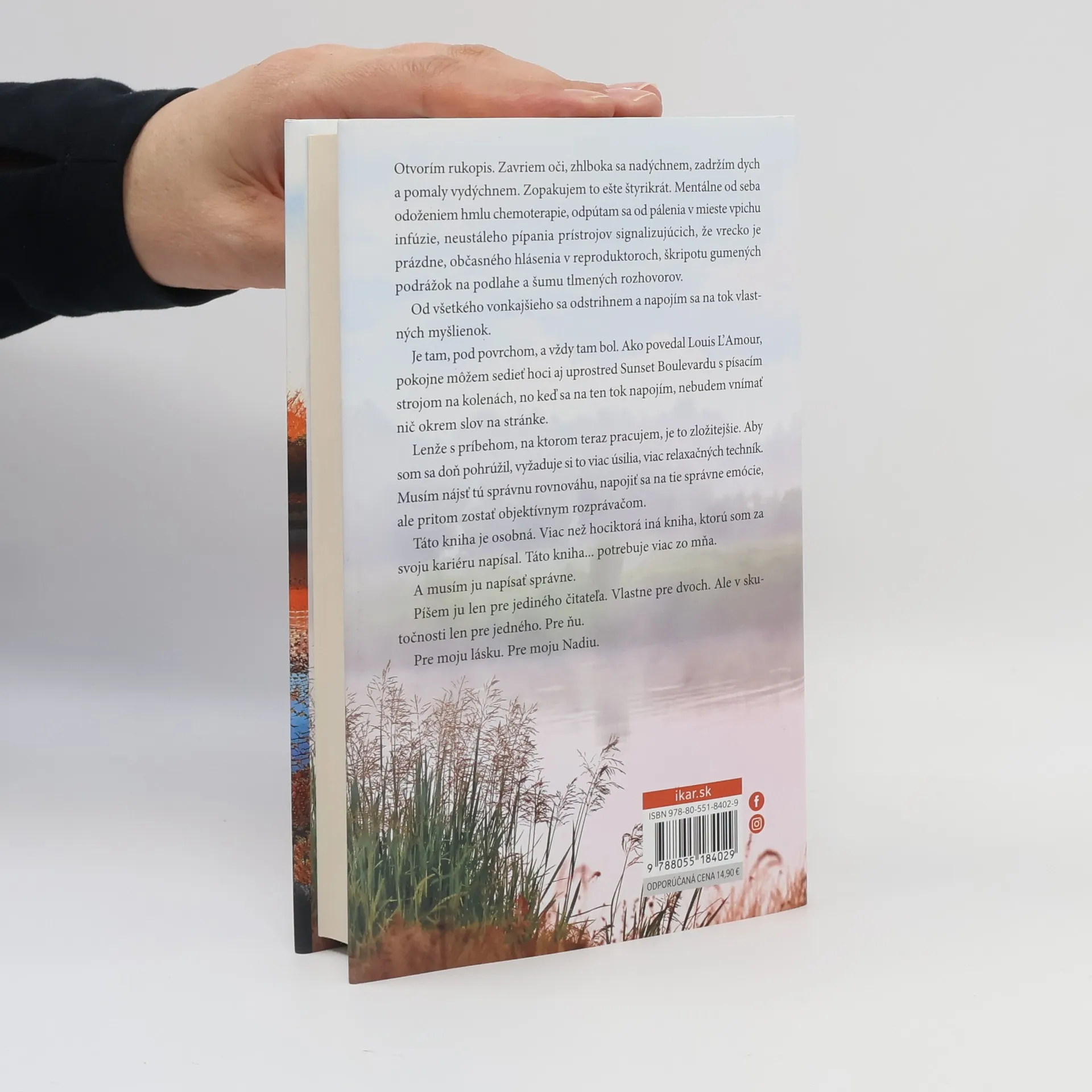 Miesto, kde má láska druhú šancu Ubehol rok odvtedy, čo ho držala za ruku a povedala mu posledné zbohom. Od tej chvíle Nadiu ničí žiaľ za zosnulým manželom – spisovateľom Adrianom, ktorý bol jej životnou láskou. Prežíva zo dňa na deň, rozpoltená medzi potrebou zapamätať si každý detail ich spoločného života a snahou na všetko zabudnúť. Takmer nespí, neje a prázdnotu v sebe zapĺňa hektickou prácou. No posledný deň roka preruší jej samotu náhle zaklopanie na dvere. Nečakaný list od milovaného Adriana ju nabáda, aby splnila jeho posledné želanie. S kľúčom od chaty pri jazere sa vydáva na cestu, ktorá ju môže priviesť k novej šanci na šťastie. Ako v príbehu, ktorý pre ňu kedysi napísal sám Adrian.