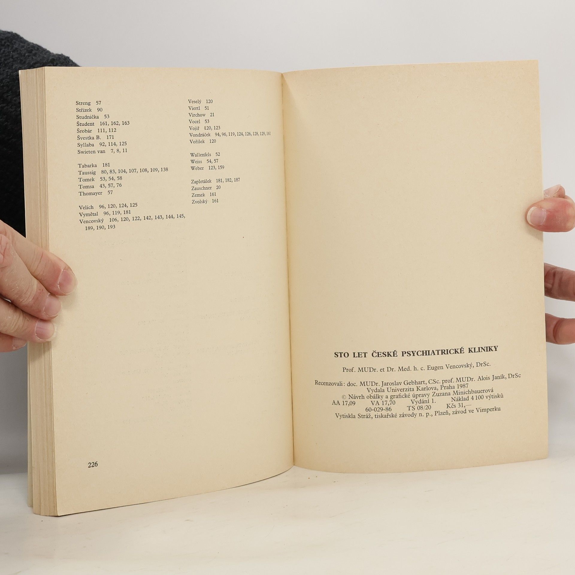Sto let české psychiatrické kliniky v Praze 1886-1986, Eugen Vencovský