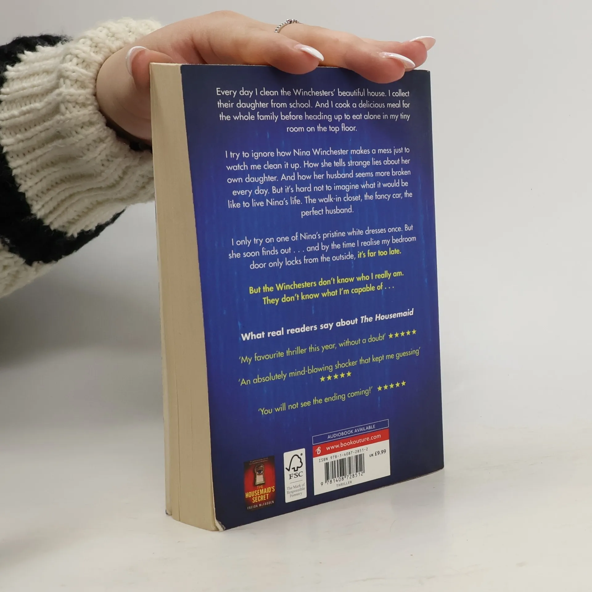 "Welcome to the family," Nina Winchester says as I shake her elegant, manicured hand. I smile politely, gazing around the marble hallway. Working here is my last chance to start fresh. I can pretend to be whoever I like. But I'll soon learn that the Winchesters' secrets are far more dangerous than my own . . .Every day I clean the Winchesters' beautiful house top to bottom. I collect their daughter from school. And I cook a delicious meal for the whole family before heading up to eat alone in my tiny room on the top floor. I try to ignore how Nina makes a mess just to watch me clean it up. How she tells strange lies about her own daughter. And how her husband Andrew seems more broken every day. But as I look into Andrew's handsome brown eyes, so full of pain, it's hard not to imagine what it would be like to live Nina's life. The walk-in closet, the fancy car, the perfect husband. I only try on one of Nina's pristine white dresses once. Just to see what it's like. But she soon finds out... and by the time I realize my attic bedroom door only locks from the outside, it's far too late. But I reassure myself: the Winchesters don't know who I really am. They don't know what I'm capable of . . .