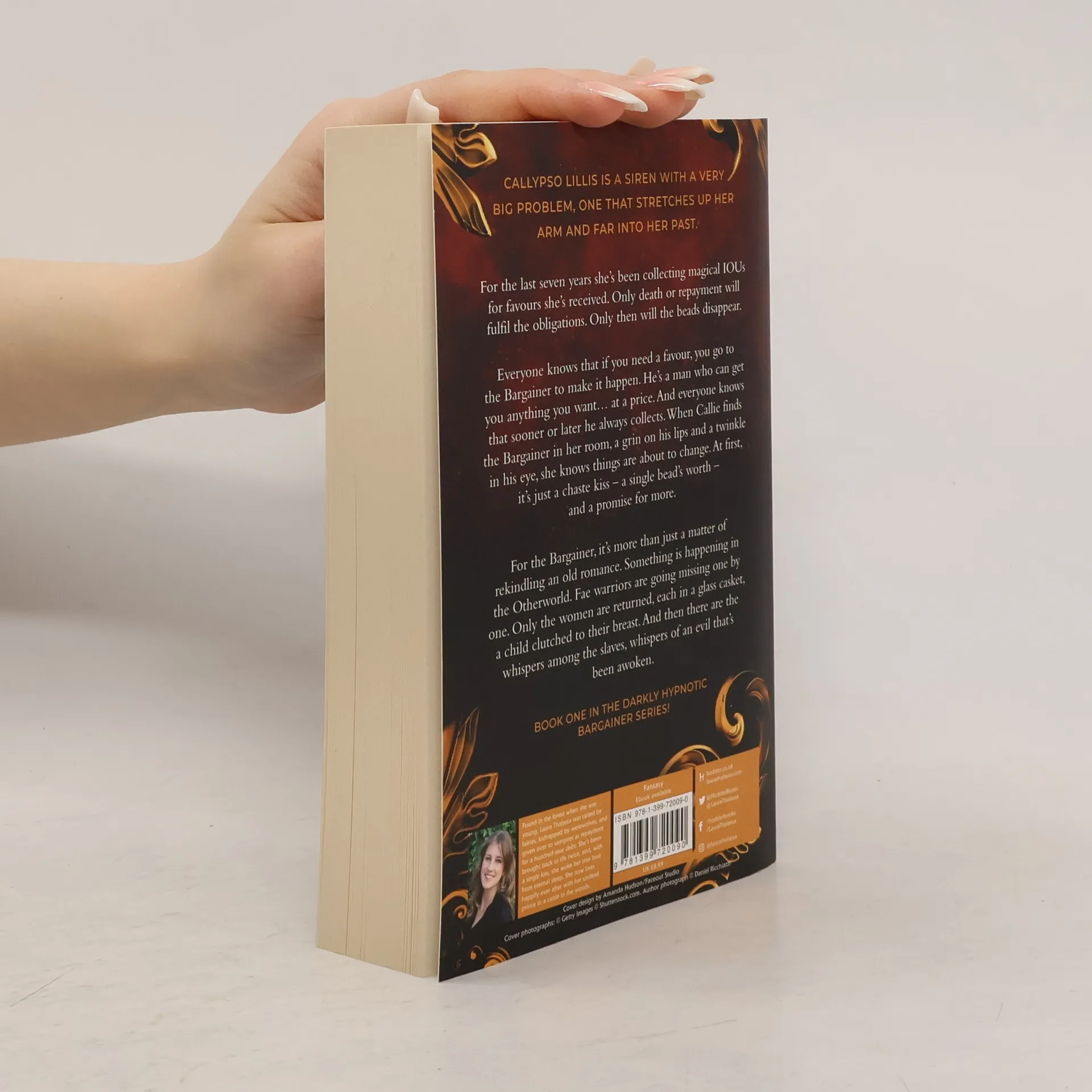From bestselling indie author Laura Thalassa comes the newly revised and edited first book in her smash-hit dark fantasy romance between a siren and the "bargainer" she owes countless favors to. Callypso Lillis is a siren with a very big problem, one that stretches up her arm and far into her past. For the last seven years Callie has been wearing a bracelet of black beads up her wrist, magical IOUs for favors she once received. Only death or repayment will fulfill her obligations. Everyone knows that if you need a favor, you go to the Bargainer to make it happen. He's a man who can get you anything you want … at a price. And everyone knows that sooner or later he always collects. But for Callie, he's never asked for repayment. Not until now. When Callie finds the Bargainer in her room, a grin on his lips and a twinkle in his eye, she knows things are about to change. At first it's admitting a truth—a single bead's worth—acknowledging the attraction between them. But the Bargainer is after more than just rekindling their connection. Something is happening in the Otherworld. Fae warriors are going missing one by one, and only the women are returned, each in a glass casket, a child clutched to her breast. For the Bargainer to save his people, he'll need the help of the siren he spurned long ago. If she can forgive him.