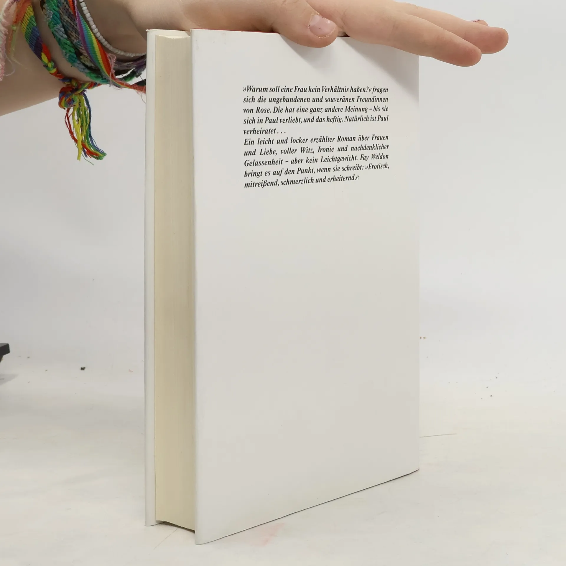 Ein klarer und kluger Blick auf das wahre Liebesleben, voller Charme und Humor. „Warum soll eine Frau kein Verhältnis haben?“, fragen sich die souveränen Freundinnen von Rose. Rose weiß die Antwort: Weil eine Frau einer anderen niemals den Mann ausspannen darf. Ihr schöner Vorsatz gerät allerdings ins Wanken, als sie Paul kennen lernt. Der ist nicht nur äußerst attraktiv, sondern leider auch verheiratet. Trotzdem lässt sich Rose auf eine Affäre mit ihm ein. Und auch ihre Freundinnen Jo, Helen und Jennifer werden von dem Liebes- und Ehekarussell fortgetragen …