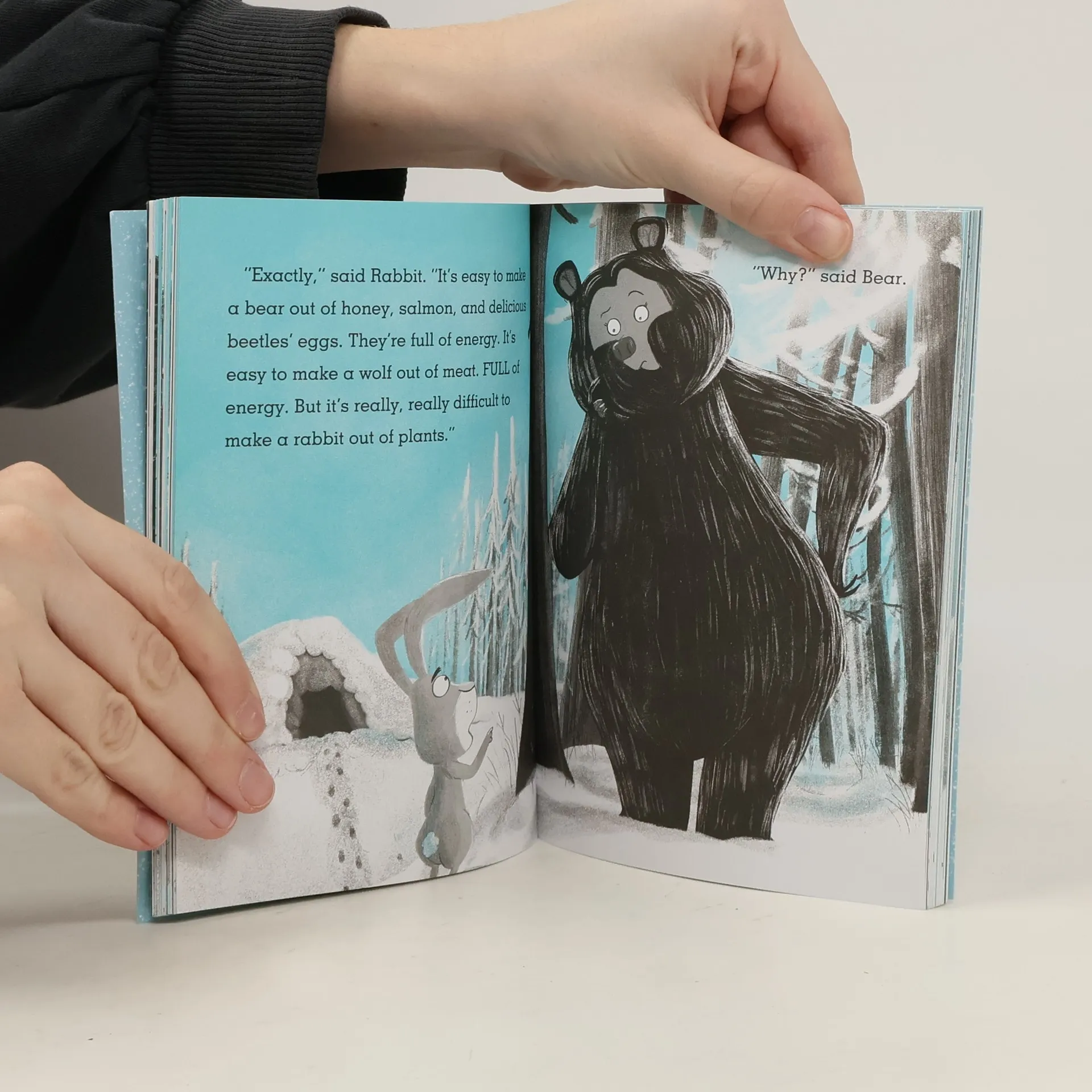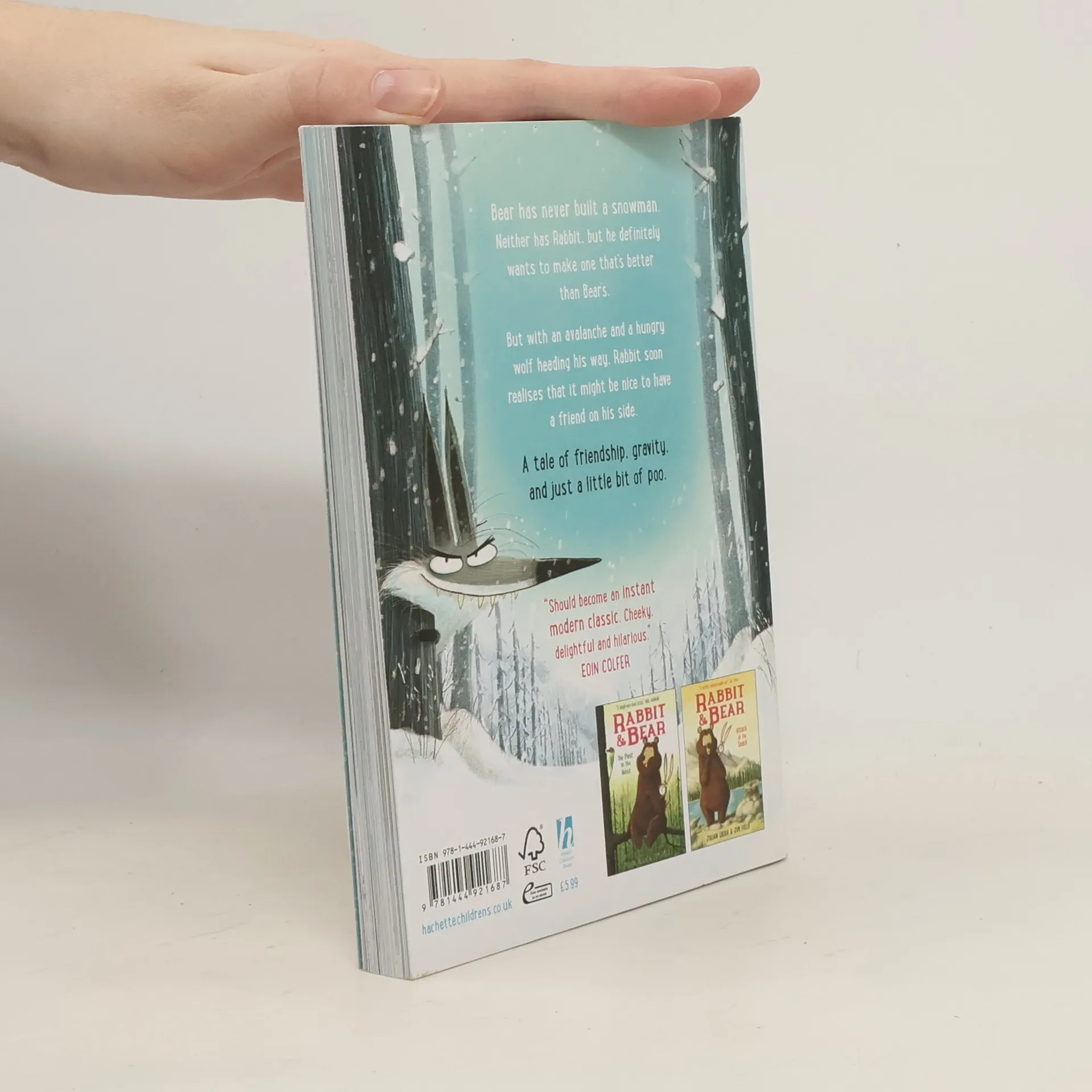 Bear wakes up early from hibernation. If she can't sleep, then at least she can make a snowman. Rabbit has never made a snowman, but he definitely wants to make one that's better than Bear's. But with an avalanche and a hungry wolf heading his way, Rabbit soon realises that it might be nice to have a friend on your side. A tale of friendship, gravity, and just a little bit of poo