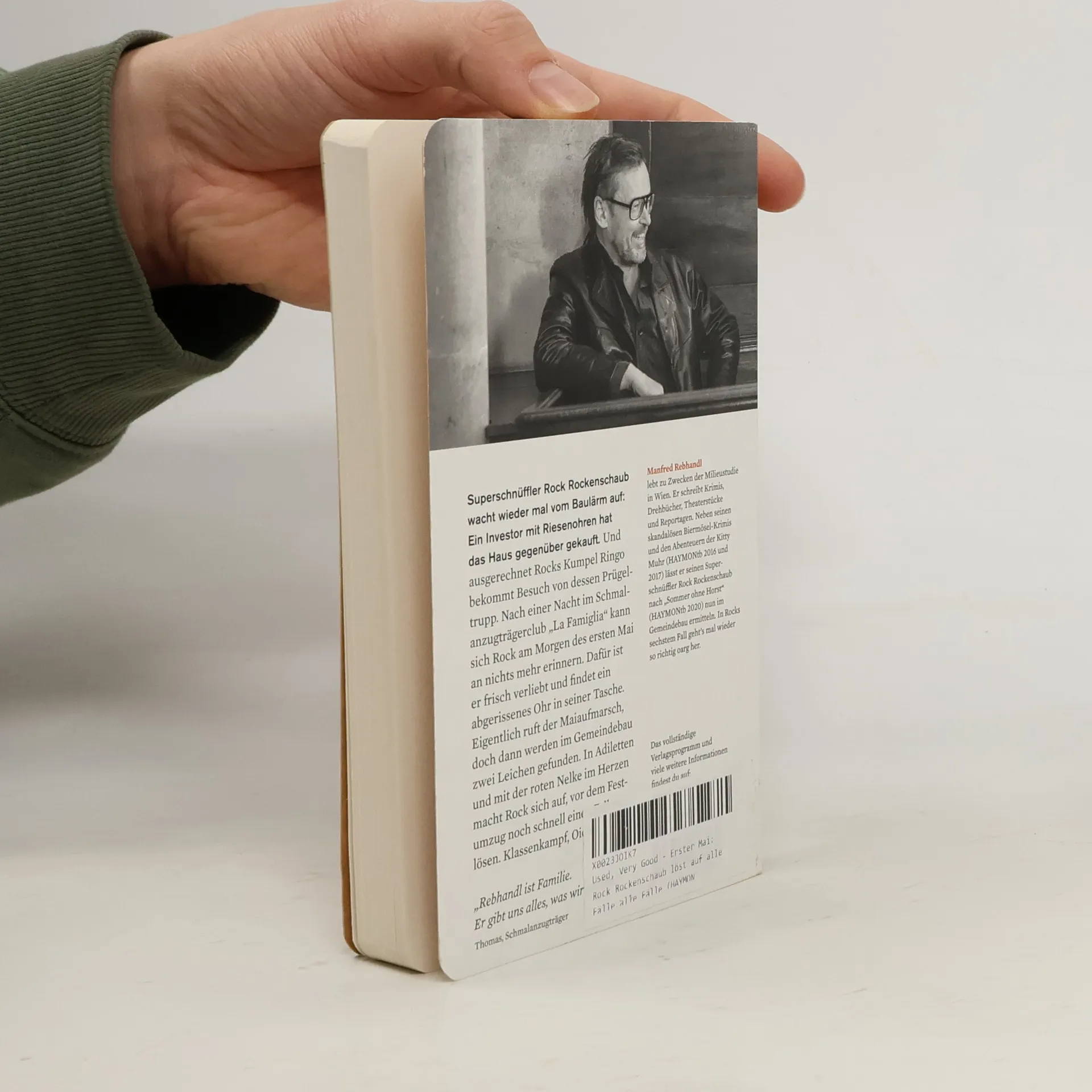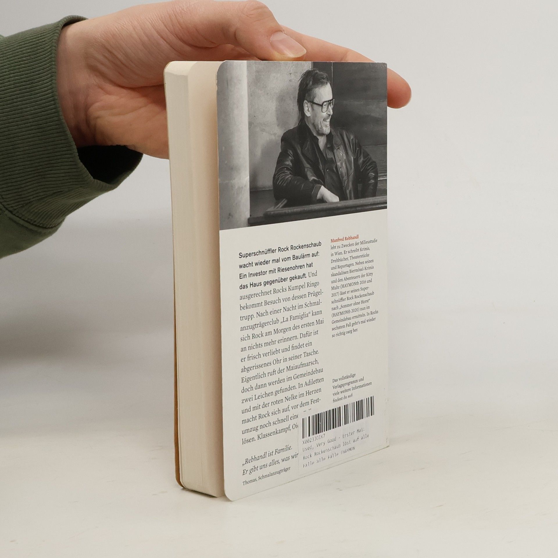 Spiel mir das Lied vom Gemeindebau: Ein Mann im Jogginganzug kämpft den Kampf der Gerechten. Schleich di, Kapitalismus! Superschnüffler Rock Rockenschaub wacht wieder mal vom Baulärm auf: Ein Immobilieninvestor mit Riesenohren hat das Haus gegenüber gekauft. Ausgerechnet Kumpel Ringo bekommt Besuch von dessen Prügeltrupp. Gentrifizierung und Verdrängung klopfen an, und das am Vorabend des 1. Mai, dem Tag aller Tage! Rock schwenkt in Gedanken schon seine rote Fahne, aber es kommt was dazwischen: Nachdem es ihn in den Schmalanzugträgerclub „La Famiglia“ verschlagen hat, kann er sich am nächsten Morgen an nichts mehr erinnern, ist dafür frisch verliebt und findet ein abgerissenes Ohr in seiner Tasche. Eigentlich ruft der Maiaufmarsch, doch Bullenkumpel Gutti hat schlechte Nachrichten: Im Gemeindebau liegen zwei Leichen, darunter eine junge Kommunistin und Umweltschützerin. Wer hat die Greta aus dem Gemeindebau umgebracht? Auf zum letzten Gefecht! Eigentlich wollte Rock ja nur zum großen Festumzug, aber der scheiß Kapitalismus, nomadische Ohren und jetzt auch noch die Toten verderben ihm den Internationalen Kampftag der Arbeiterklasse. Dass es nicht nach Plan läuft, das ist Rock eigentlich eh gewohnt: Fünf Fälle hat der Superschnüffler bereits gelöst. Dabei hat er Premiumpornos unters Volk gebracht, ein paarmal die Liebe seines Lebens gefunden und eine Midlife-Crisis überwunden. Er verdreht den Chicks im Hawaii-Hemd oder im gelben Jogginganzug den Kopf, und egal, ob Bademeister retten oder das rote Wien beschwören: Superschnüffler Rock Rockenschaub macht es mit ganzer Seele. Zeit für eine Kampfansage! Rosa Luxemburg dreht sich im Grabe um - vor Lachen! In Adiletten, mit dem Schießeisen im Hosenbund und der roten Nelke im Herzen macht Rock sich auf, vor dem Festumzug noch schnell einen Fall zu lösen. Er latscht von Stiege zu Stiege, trifft auf einen leicht bekleideten Prepper und eine Pensionistin mit Argusaugen, auf Sozialdemokraten im repräsentativen Dachausbau und andere Trickbetrüger. Klassenkampf, Oida! „Rebhandl ist Familie. Er gibt uns alles, was wir wollen.“ Thomas, Schmalanzugträger „Mei Parteibiachl is ned deppad!“ Ein echter Wiener „Ab sofort Pflichtlektüre bei uns!“ Renate, sozialdemokratische Lehrerin „Zum Klassenkampf? Zur Türe hinaus, linke Reihe anstellen, jeder nur eine rote Fahne.“ Rosi, Hausmeisterin
