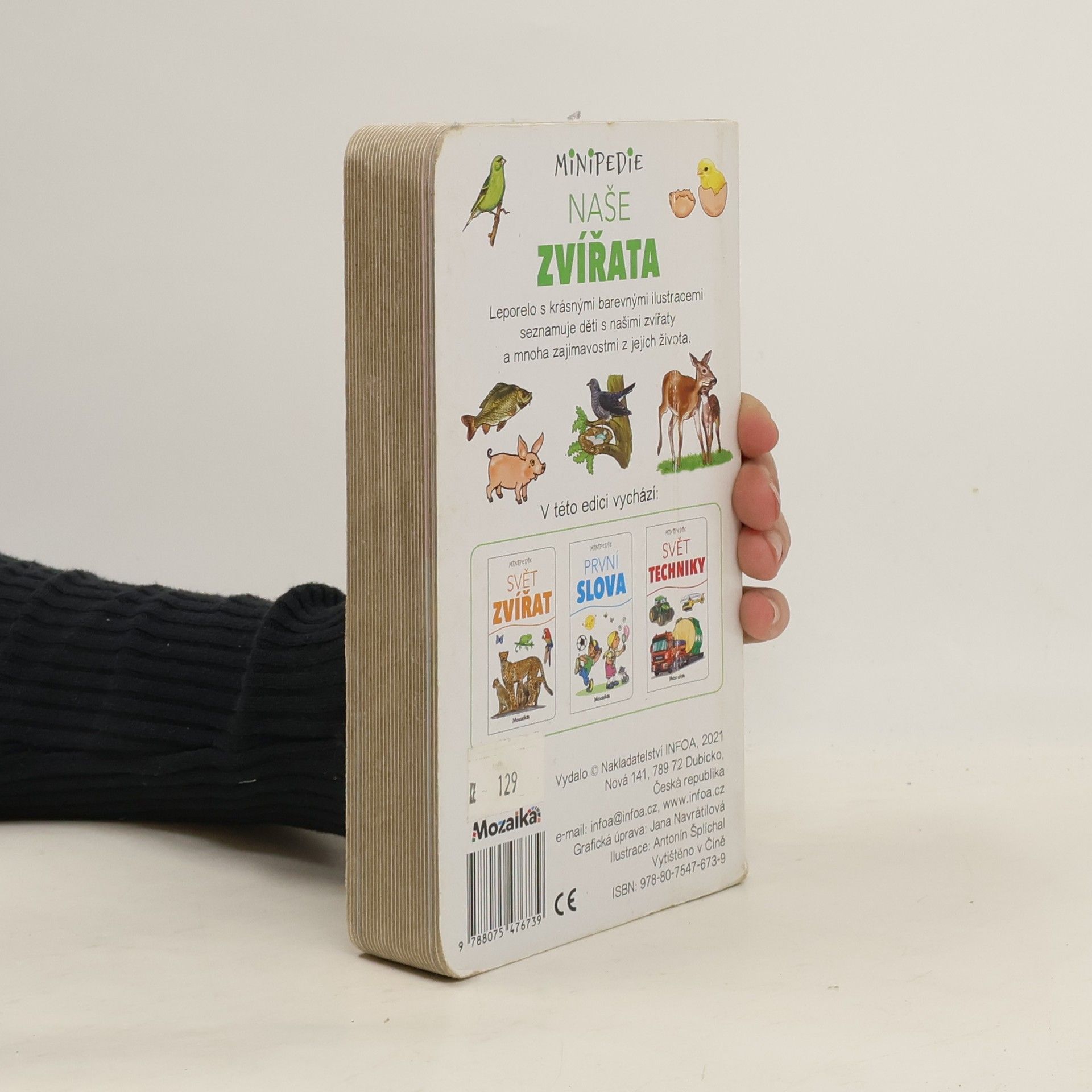 Leporelo s krásnými barevnými ilustracemi seznamuje děti s našimi zvířaty a mnoha zajímavostmi z jejich života.