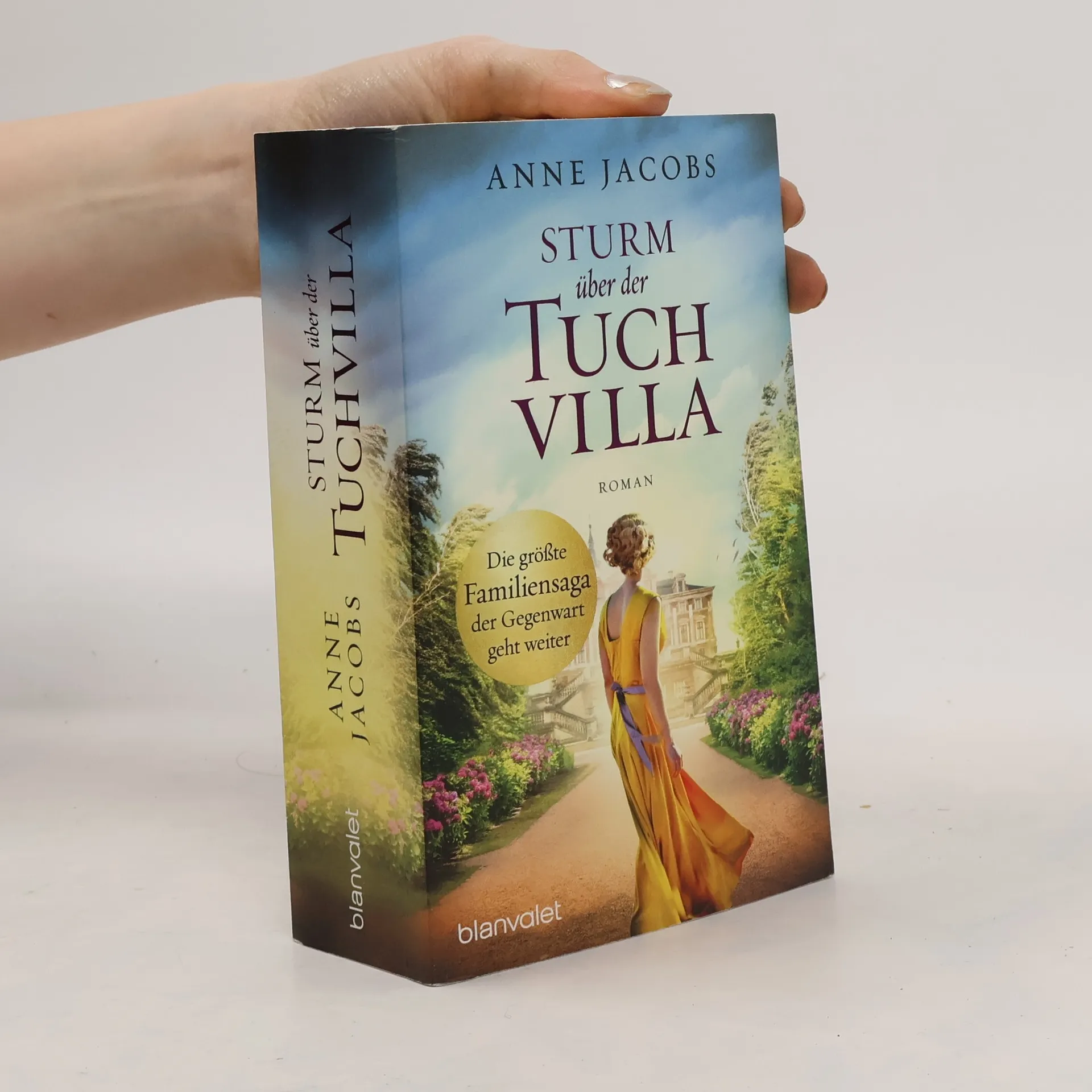 In Zeiten des Sturms muss die Familie Melzer zusammenhalten, um ihre geliebte Tuchvilla zu retten ... Augsburg, 1935. Der Sturm, der sich über Deutschland zusammenbraut, hat auch für die Familie Melzer und ihre geliebte Tuchvilla weitreichende Konsequenzen: Maries erfolgreiches Schneideratelier steht kurz vor dem Aus, als bekannt wird, dass sie jüdischer Abstammung ist. Und auch ihr Mann Paul hat mit großen Sorgen zu kämpfen, denn die finanzielle Lage der Tuchfabrik und der wachsende Druck von Seiten der Regierung, bereiten ihm schlaflose Nächte. Als Paul eines Tages dringend geraten wird, sich von seiner Frau scheiden zu lassen, muss Marie eine folgenschwere Entscheidung treffen, die ihr aller Leben für immer verändern wird … Sie lieben mitreißende, romantische Familiensagas, die in vergangen Zeiten spielen? Dann entdecken Sie weitere Romane von Anne Jacobs! Die Tuchvilla-Saga: 1. Die Tuchvilla 2. Die Töchter der Tuchvilla 3. Das Erbe der Tuchvilla 4. Rückkehr in die Tuchvilla 5. Sturm über der Tuchvilla Die Gutshaus-Saga: 1. Das Gutshaus. Glanzvolle Zeiten 2. Das Gutshaus. Stürmische Zeiten 3. Das Gutshaus. Zeit des Aufbruchs Anne Jacobs als Leah Bach: Der Himmel über dem Kilimandscharo Sanfter Mond über Usambara Insel der tausend Sterne