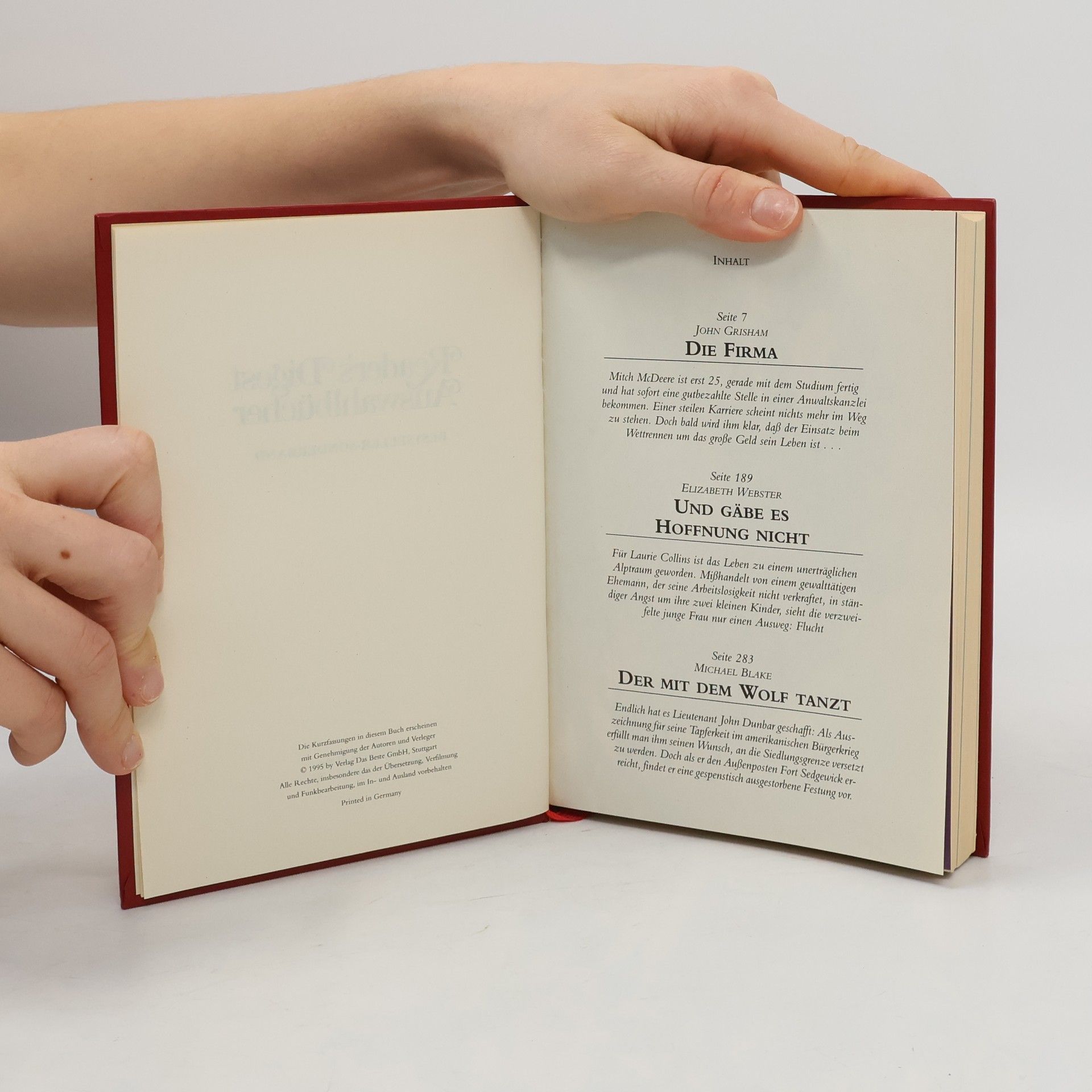Reader's Digest. Die Firma. Und gäbe es Hoffnung nicht. Der mit dem Wolf tanzt, John Grisham, Michael Blake, Elizabeth Webster