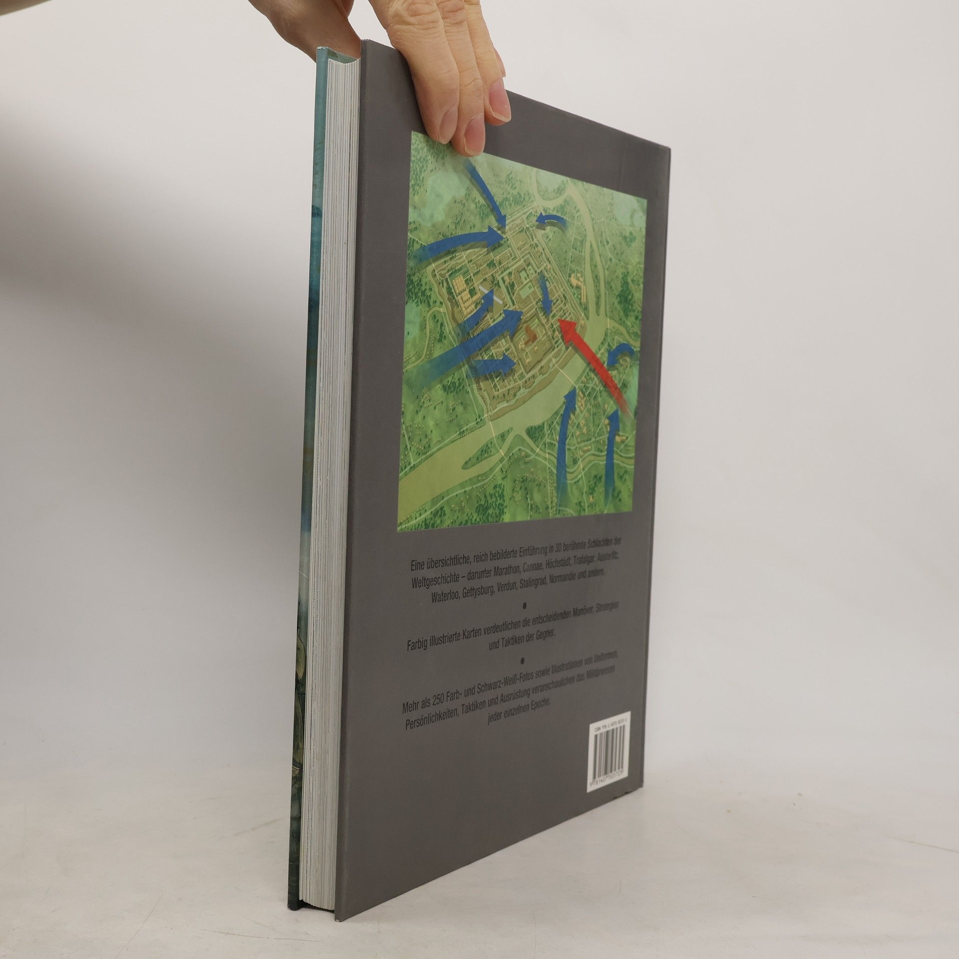 Eine übersichtliche, reich bebilderte Einführung in 30 berühmte Schlachten der Weltgeschichte - darunter Marathon, Cannae, Höchstädt, Trafalgar, Austerlitz, Waterloo, Gettysburg. Verdun, Stalingrad, Normandie und andere. Farbig illustrierte Karten verdeutlichen die entscheidenden Manöver, Strategien und Taktiken der Gegner. Mehr als 250 Farb- und Schwarz-Weiß-Fotos sowie Illustrationen von Uniformen, Persönlichkeiten, Taktiken und Ausrüstung veranschaulichen das Militärwesen jeder einzelnen Epoche.