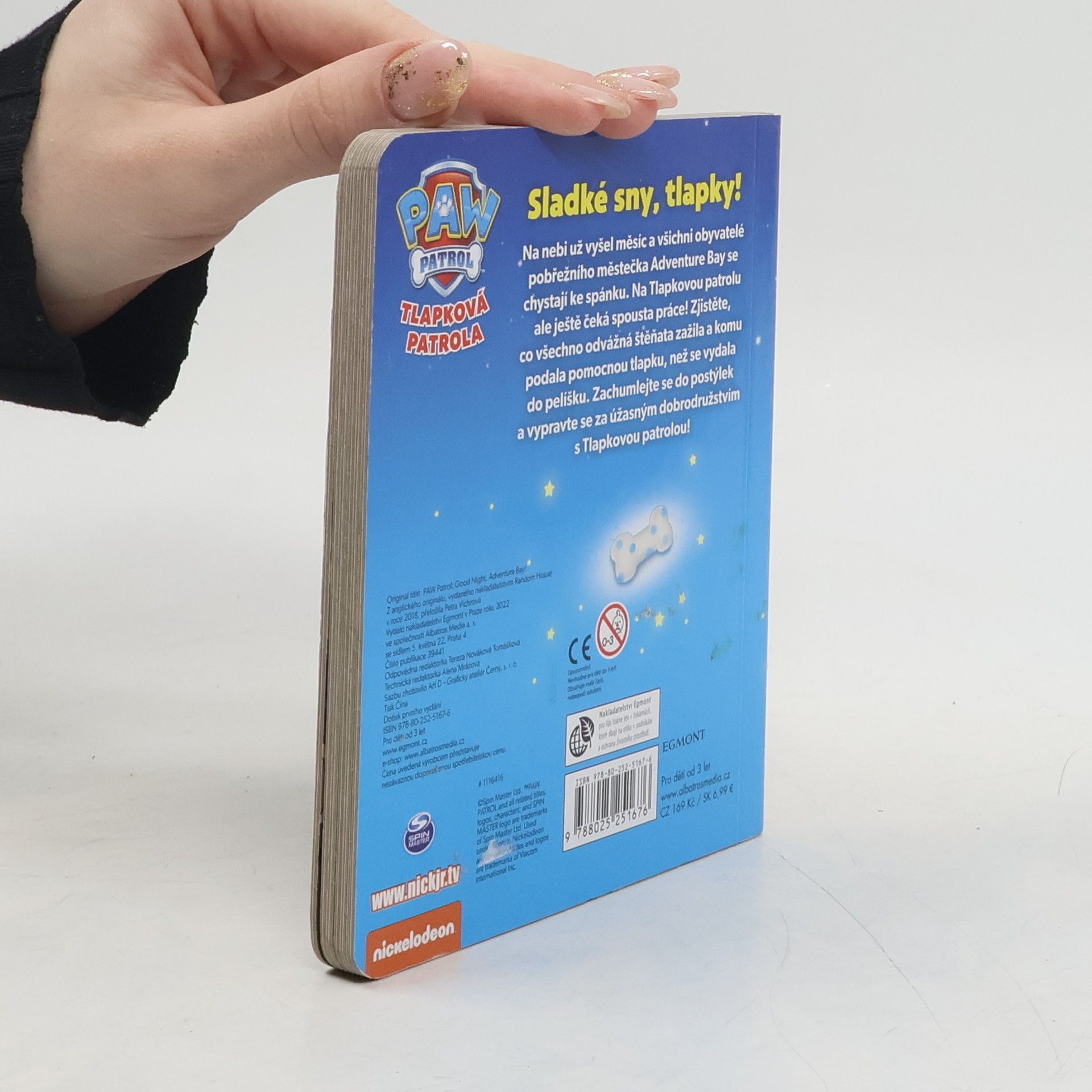 S roztomilým leporelem o Tlapkové patrole bude usínání hračka. Na nebi už vyšel měsíc a všichni obyvatelé pobřežního městečka Adventure Bay se chystají ke spánku. Na Tlapkovou patrolu ale ještě čeká spousta práce! Zjistěte, co všechno odvážná štěňata zažila a komu podala pomocnou tlapku, než se vydala do pelíšku. Zachumlejte se do postýlek a vypravte se za úžasným dobrodružstvím s Tlapkovou patrolou!