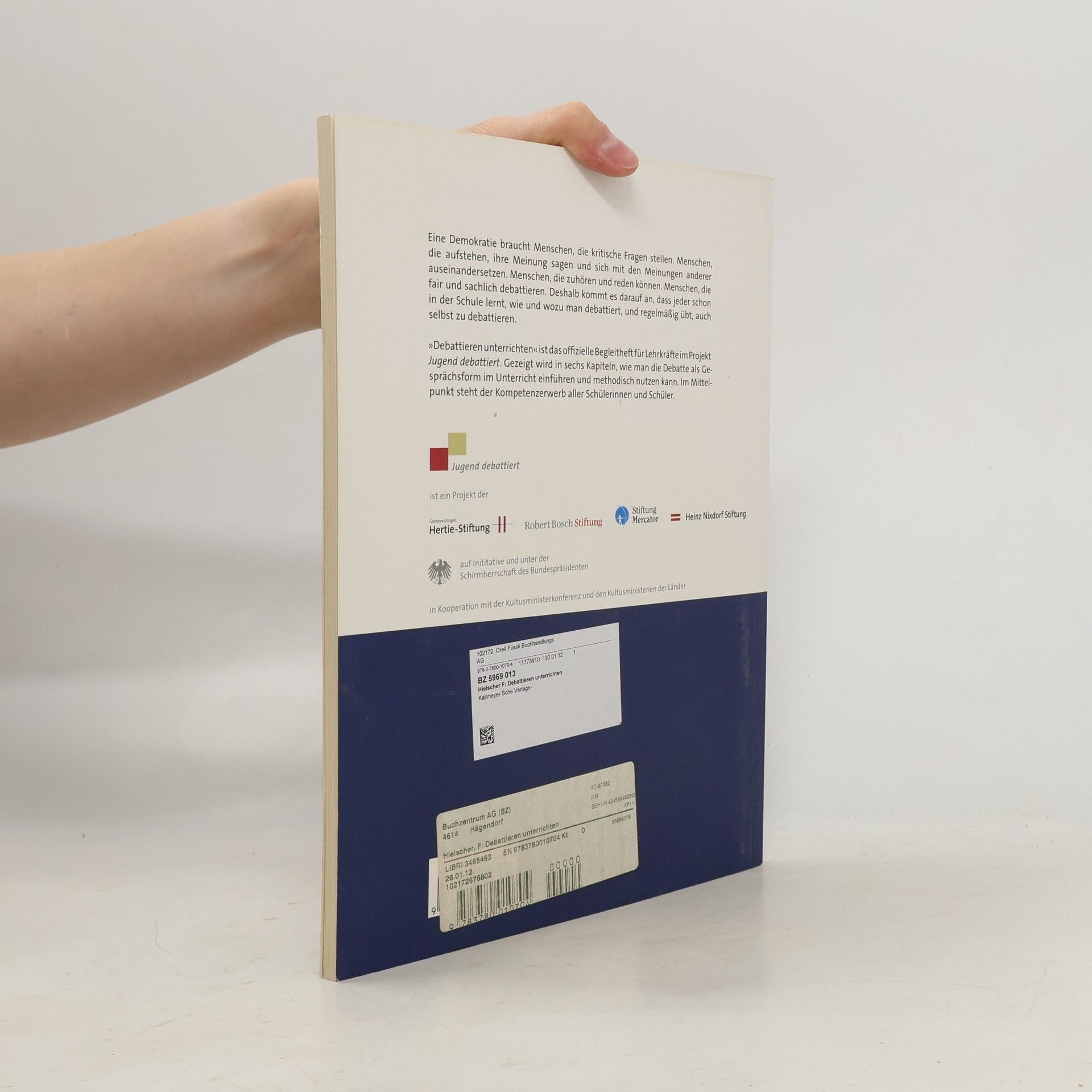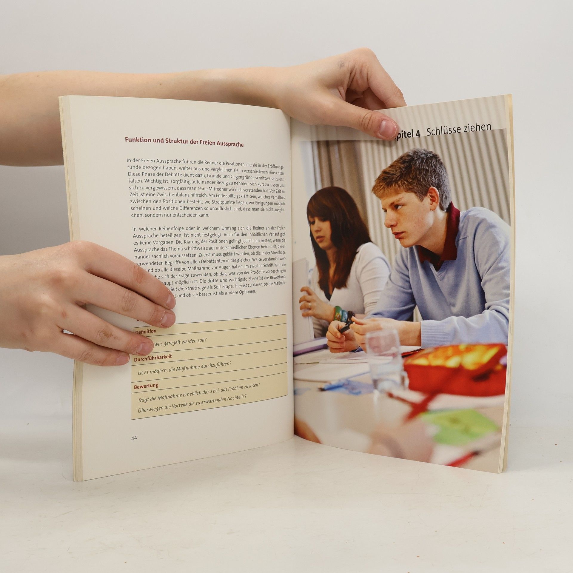 So lernen Schüler debattieren „Debattieren unterrichten“ ist das offizielle Begleitheft für Lehrkräfte bei Jugend debattiert. Das Heft zeigt allen interessierten Lehrerinnen und Lehrern in 6 Kapiteln, wie man die Debatte als Gesprächsform in den Unterricht einführen und methodisch nutzen kann. Die einzelnen Übungen sind systematisch aufeinander abgestimmt und erlauben, die ganze Klasse zu beteiligen. Alle Übungen zielen darauf ab, Begeisterung für das Debattieren zu wecken und jedem Schüler, jeder Schülerin einen spürbaren Fortschritt an Sachkenntnis, Ausdrucksvermögen, Gesprächsfähigkeit und Überzeugungskraft zu ermöglichen. Die leicht umsetzbaren Unterrichtsvorschläge sind entsprechend vier Kompetenzen zugeordnet: Gründe finden, zum Punkt kommen, Aufeinander eingehen und Schlüsse ziehen. Die Reihenfolge der Darstellung orientiert sich an den voraussichtlichen Schülerinteressen. Je nachdem, wie sich die Klasse entwickelt, sind auch Wechsel zwischen den Lektionen möglich, außerdem eine ganzjährige Verwendung einzelner Übungen im Rahmen des jeweiligen Fachunterrichts.