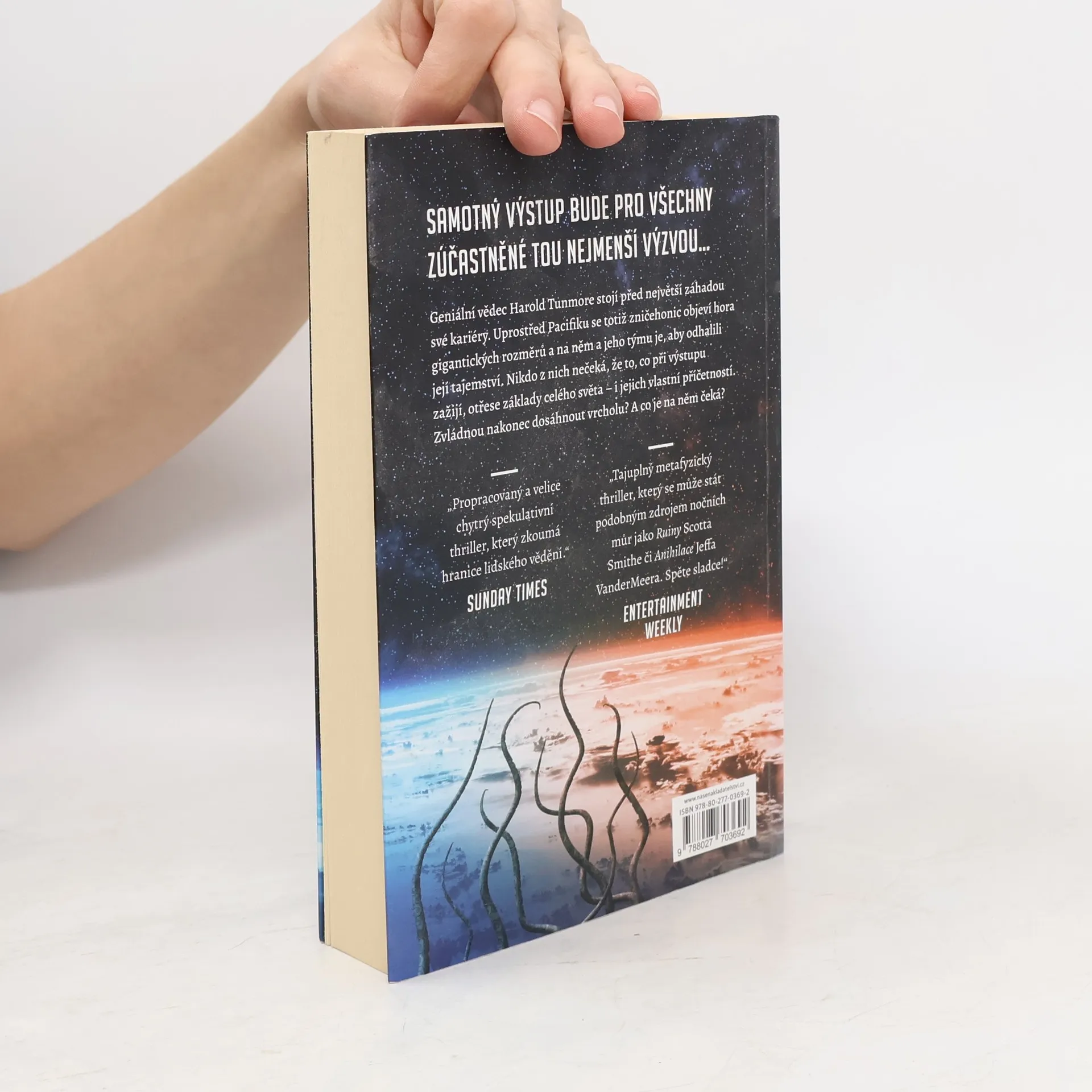 Když se uprostřed Tichého oceánu zničehonic objeví obrovská hora, je na ni vyslána skupina vědců, aby ji prozkoumala, sesbírala vzorky a zjistila, co se nachází na jejím vrcholu. Jedním ze členů výzkumné expedice je i významný britský vědec, badatel a chronický samotář Harold Tunmore, který má pro cestu na záhadnou horu vlastní důvody přesahující vědecký zájem. Čím výš ale tým pod vedením zkušeného horolezce a bývalých armádních důstojníků stoupá, tím podivnější věci se začínají dít. Čas i prostor se tu chovají jinak, minuty se mění v hodiny a hodiny ve dny. Uprostřed všeprostupujícího chladu, nebezpečných nadmořských výšek a zrádných útesů se horolezcům začnou vkrádat do mysli cizí myšlenky a ty vlastní naopak blednou. Co během výstupu zjistí o sobě a svém světě? Co nebo koho objeví na vrcholu – a dostanou se tam vůbec živí a zdraví? Kniha Na vrchol, která je zarámovaná nálezem neodeslaných dopisů Harolda Tunmora skrývajících neuvěřitelný a mrazivý příběh, se odvážně pouští do úvah o hranicích vědy a víry a zkoumá krásné i temné stránky lidské povahy.