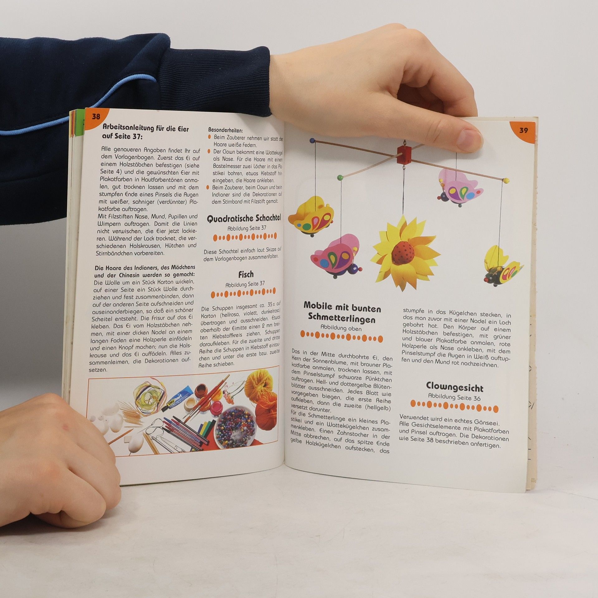 Bilder und Anleitungen zum Bemalen von Eiern in unterschiedlichen Grössen und verschiedenen Techniken.