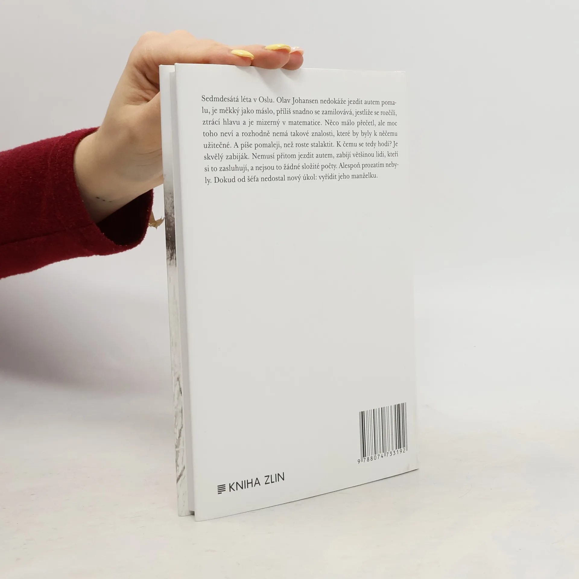 Sedmdesátá léta v Oslu. Olav Johansen nedokáže jezdit autem pomalu, je měkký jako máslo, příliš snadno se zamilovává, jestliže se rozčilí, ztrácí hlavu a je mizerný v matematice. Něco málo přečetl, ale moc toho neví a rozhodně nemá takové znalosti, které by byly k něčemu užitečné. A píše pomaleji, než roste stalaktit. K čemu se tedy hodí? Je skvělý zabiják. Nemusí přitom jezdit autem, zabíjí většinou lidi, kteří si to zasluhují, a nejsou to žádné složité počty. Alespoň prozatím nebyly. Dokud od šéfa nedostal nový úkol: vyřídit jeho manželku.