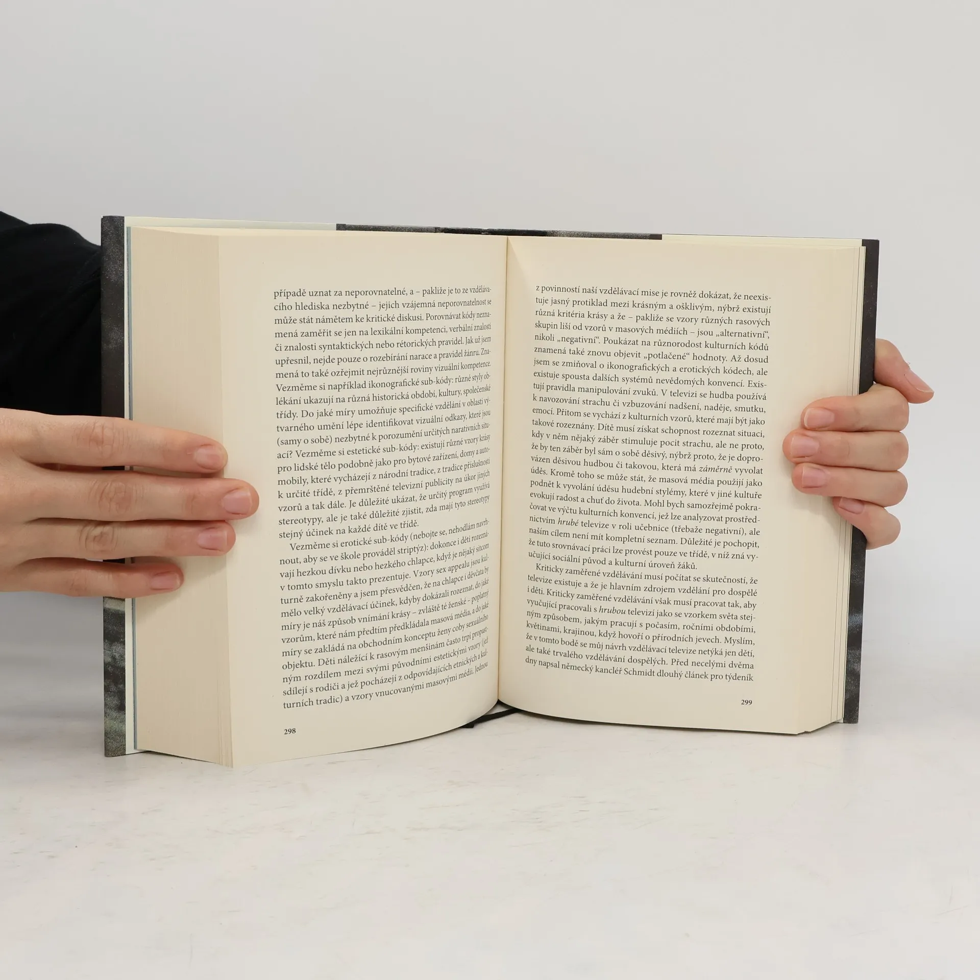 Nový svazek díla Umberta Eca je určen všem čtenářům, kteří chtějí poznat různé stránky televize jakožto svébytného jevu. Zahrnuje autorovy práce na dané téma z let 1956–2015 – eseje, příspěvky přednesené na kongresech i novinové články. Úvahy v nich obsažené pokrývají rozsáhlé časové období od prvních vysílaných pořadů až do dnešních dob, kdy se k televizi přidružuje internet a sociální sítě. Masmédia nepřenášejí ideologie, ona sama jsou ideologiemi, shrnuje své poznatky autor.