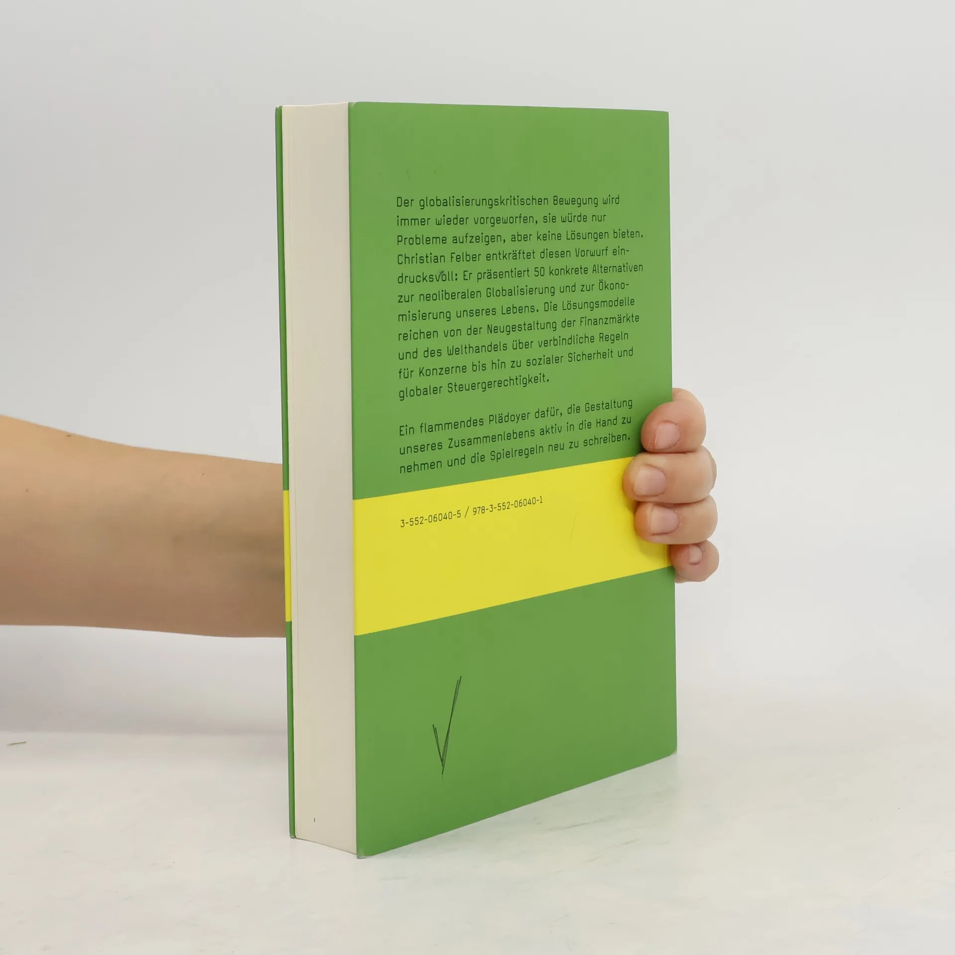 Der globalisierungskritischen Bewegung wird immer wieder vorgeworfen, sie würde nur Probleme aufzeigen, aber keine Lösungen bieten. Christian Felber, Mitbegründer von Attac Österreich, entkräftet diesen Vorwurf eindrucksvoll: Pointiert, doch überzeugend präsentiert er 50 konkrete Alternativen zu neoliberalen Strategien der Globalisierung und Ökonomisierung unseres Lebens. Seine Lösungsmodelle reichen dabei von der Neugestaltung der Finanzmärkte und des Welthandels bis hin zu allgemein verbindlichen Regeln für Konzerne und Standortkooperationen. Ein Plädoyer dafür, die Gestaltung unseres Zusammenlebens aktiv in die Hand zu nehmen und die Spielregeln neu zu schreiben.