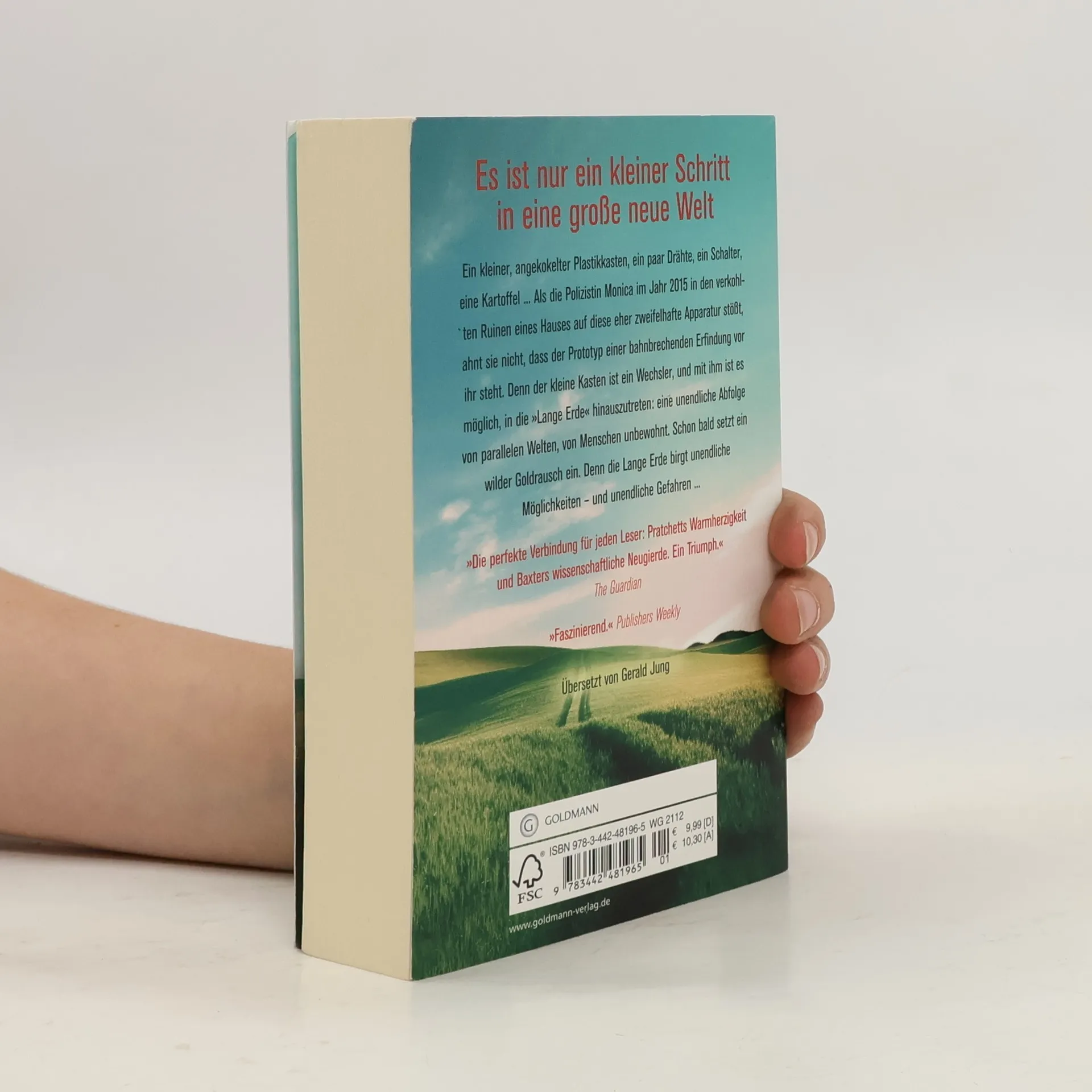 Es gibt unendlich viele Welten zu entdecken. Sie sind nur einen kleinen Schritt entfernt ... Ein kleiner, angekokelter Plastikkasten, ein paar Drähte, ein Schalter, eine Kartoffel ... Als die Polizistin Monica im Jahr 2015 in den verkohlten Ruinen eines Hauses auf diese eher zweifelhafte Apparatur stößt, ahnt sie nicht, dass der Prototyp einer bahnbrechenden Erfindung vor ihr steht. Denn der kleine Kasten ist ein Wechsler, mit dem es von nun an möglich sein wird, in die „Lange Erde“ hinauszutreten: eine unendliche Abfolge von parallelen Welten, von Menschen unbewohnt. Schon bald setzt auf der alten Erde ein wilder Goldrausch ein. Denn die Lange Erde birgt unendliche Möglichkeiten – und unendliche Gefahren ...