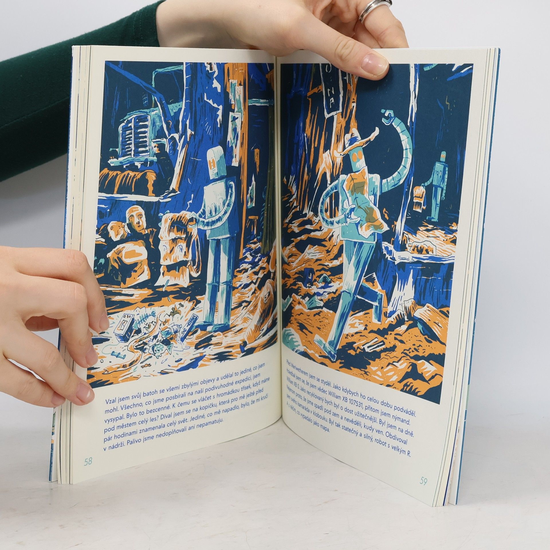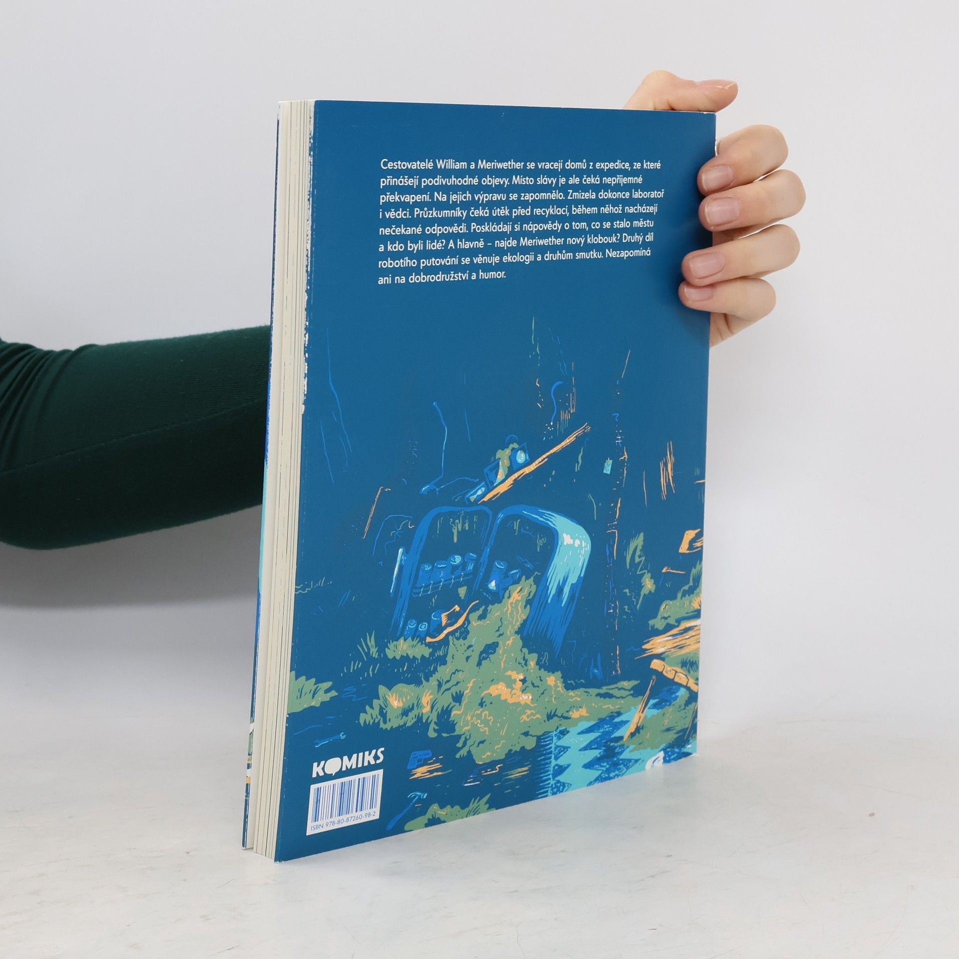 Cestovatelé William a Meriwether se vracejí domů z expedice, ze které přinášejí podivuhodné objevy. Místo slávy je ale čeká nepříjemné překvapení. Na jejich výpravu se zapomnělo. Zmizela dokonce laboratoř i vědci. Průzkumníky čeká útěk před recyklací, během něhož nacházejí nečekané odpovědi. Poskládají si nápovědy o tom, co se stalo městu a kdo byli lidé? A hlavně – najde Meriwether nový klobouk? Druhý díl robotího putování se věnuje ekologii a druhům smutku. Komiksově pojatá kniha nezapomíná ani na dobrodružství a humor.