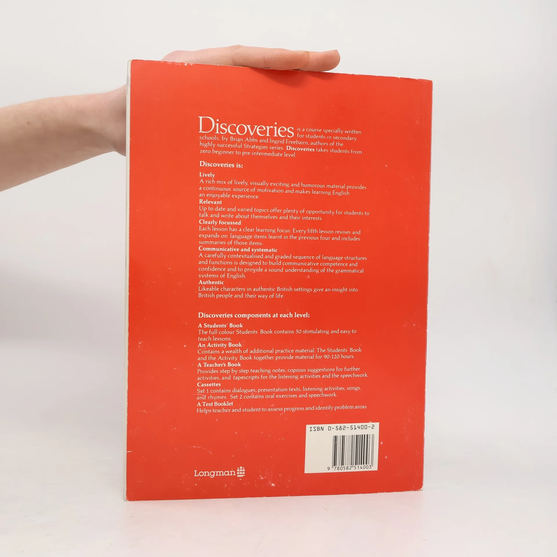 Fifty stimulating and easy to teach lessons with a clear language focus 'Round-up' lessons revise and draw together the previous four lessons with additional practice in reading, listening and writing Lessons contain dialogues and texts, pictures, language exercises, reading texts, writing tasks and listening activities 'Look!' boxes highlight points of grammar language which need special explanation 'Did you know?'/'Joke time!' small factual items and simple jokes which are linked to the lesson either thematically or linguistically Projects an occasional feature which is linked to the theme of the lesson. It aims to take students outside the textbook, to develop reference and study skills and to link English to the general curriculum Grammar summary in each Round-up lesson give an overview of the system behind the language the students have been learning Word lists active word lists for students to learn are printed lesson-by-lesson in the reference section at the end of the Students' Book