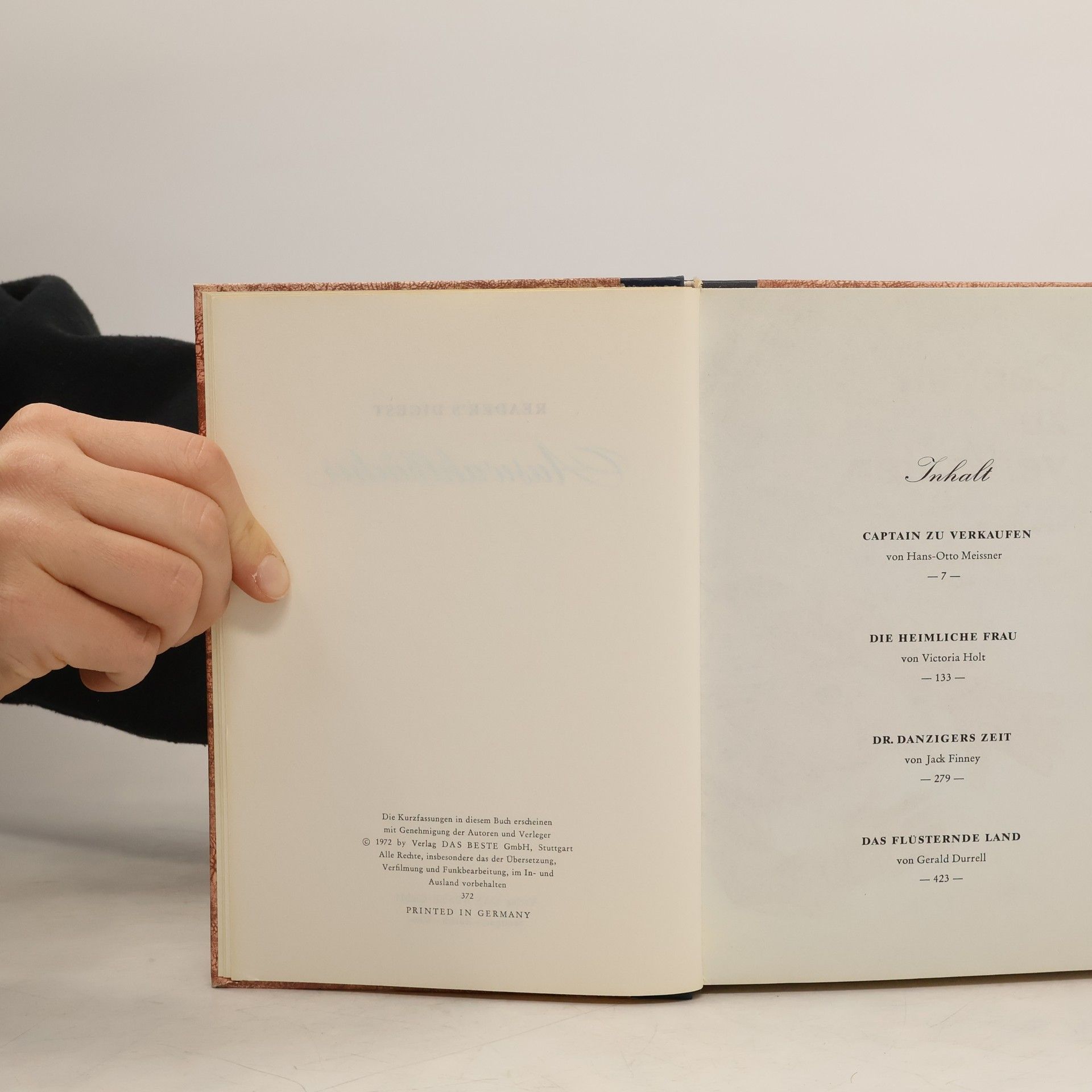 Reader's Digest Auswahlbücher. Captain zu verkaufen. Die heimliche Frau. Dr. Danzigers Zeit; Das flüsternde Land, Gerald Malcolm Durrell, Jack Finney, Hans-Otto Meissner, Jean Plaidy