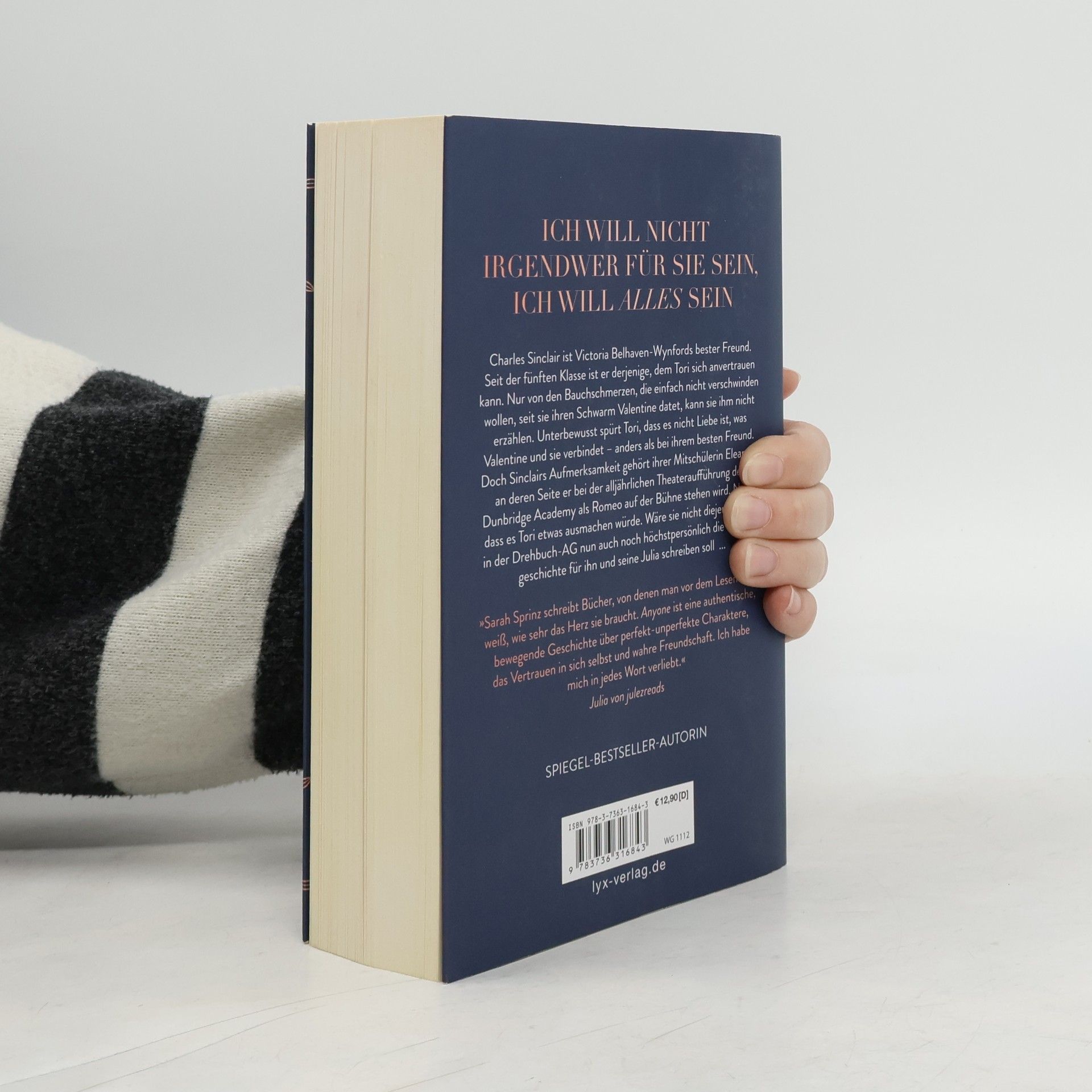 Ich will nicht Irgendwer für sie sein, ich will alles sein Charles Sinclair ist Victoria Belhaven-Wynfords bester Freund. Seit der fünften Klasse ist er derjenige, dem Tori sich anvertrauen kann. Nur von den Bauchschmerzen, die einfach nicht verschwinden wollen, seit sie ihren Schwarm Valentine datet, kann sie ihm nicht erzählen. Unterbewusst spürt Tori, dass es nicht Liebe ist, was Valentine und sie verbindet - anders als bei ihrem besten Freund. Doch Sinclairs Aufmerksamkeit gehört ihrer Mitschülerin Eleanor, an deren Seite er bei der alljährlichen Theateraufführung der Dunbridge Academy als Romeo auf der Bühne stehen wird. Nicht dass es Tori etwas ausmachen würde. Wäre sie nicht diejenige, die in der Drehbuch-AG nun auch noch höchstpersönlich die Liebesgeschichte für ihn und seine Julia schreiben soll ... Band 2 der DUNBRIDGE-ACADEMY-Reihe von SPIEGEL-Bestseller-Autorin Sarah Sprinz