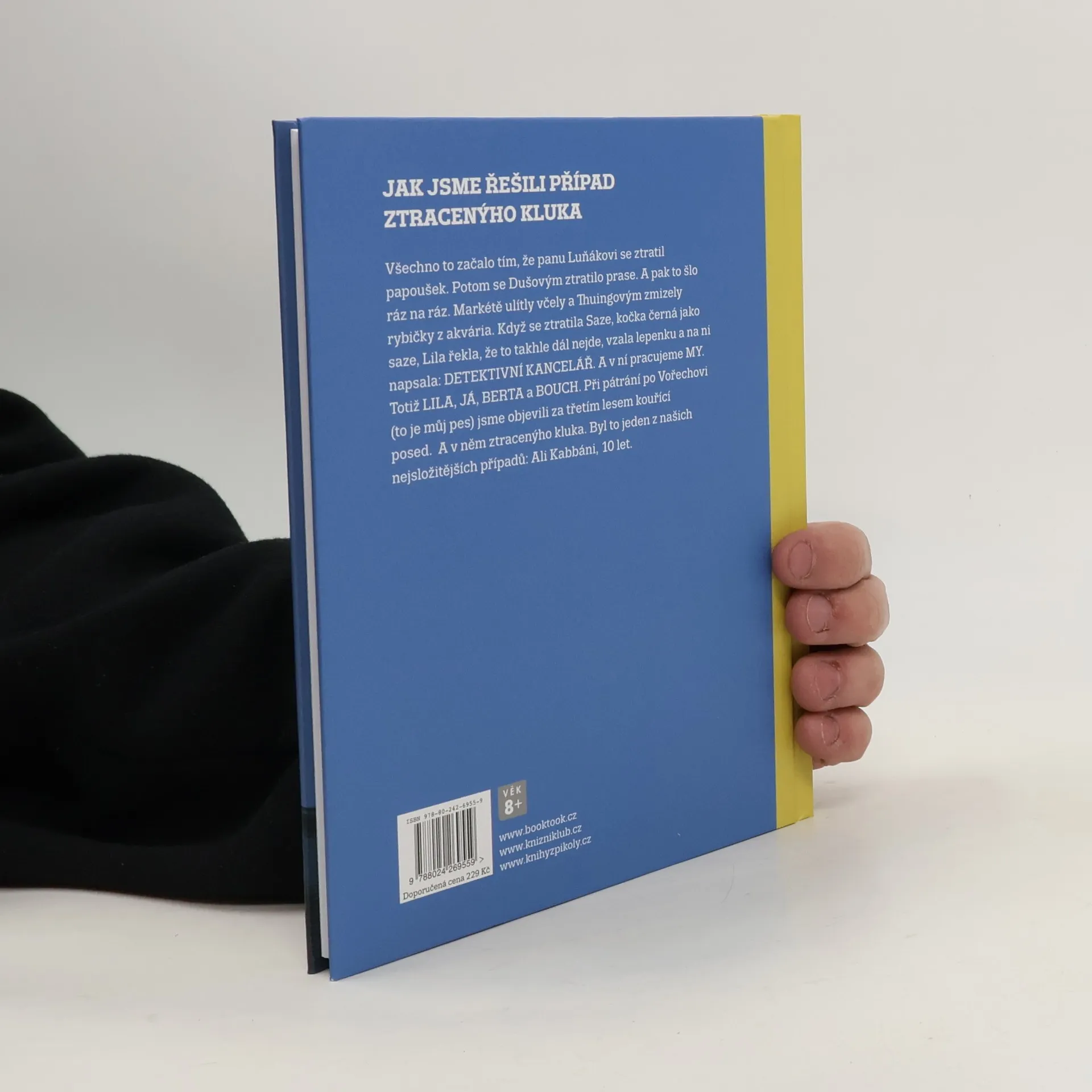 Nejdřív se ztratil panu Luňákovi papoušek. Potom se ztratilo Dušovým prase. To se stalo v pondělí. A pak to šlo ráz na ráz. Markétě ulítly včely a Thuingovým zmizely rybičky z akvária. Když se pak ve středu ztratila černá kočka Saze, tak Lila řekla, že to takhle dál nejde, že se toho musíme ujmout. A hned vzala lepenku a na ni napsala: DETEKTIVNÍ KANCELÁŘ. A v ní pracujeme MY. Totiž LILA, JÁ, BERTA a BOUCH. Při pátrání po Vořechovi (to je můj pes) jsme objevili za třetím lesem kouřící posed. A v něm ztracenýho kluka. Byl to jeden z našich nejsložitějších případů: Ali Kabbáni, 10 let. Vtipně a svižně vyprávěný příběh o nevážných věcech, ale i jedné vážné, ilustrovala Galina Miklínová.