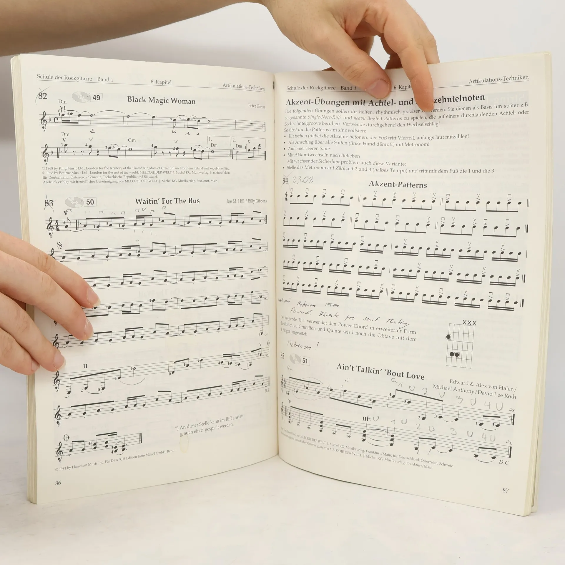 Rock the World! Du willst endlich rocken und allen zeigen, dass du's drauf hast? Du suchst eine Methode, die dich schnell voran bringt und Spaß macht? Du willst durchstarten und dir die Grundlagen erarbeiten, um angesagte Songs und Soli, aber auch Rock-Klassiker zu spielen? Das alles nicht immer nur alleine, sondern auch begleitet von gut klingenden Playbacks? Dann bietet dir dieser Band alles, was du brauchst: eine songorientierte Schule randvoll mit Parts, Riffs und Ausschnitten aus Rocksongs; Infos zu Instrument, Spieltechnik, Zubehör, zum Gitarrenkauf und dem Stimmen der Gitarre; eine Einführung in die Notenschrift, eine Griffbrett-Übersicht zum Mitnehmen, eine CD zum Üben und Mitspielen und jetzt neu: ein 56seitiges Tabulatur-Beiheft. Die vier neuen Songs im Beiheft werden auch in „Pure Drumming“ und „Bass Like The Greats“ behandelt. So stärkt das Tab-Beiheft das neuartige Bandkonzept. Das 100.000fach bewährte Standardwerk für Selbststudium und Unterricht! Die Website zur „Schule der Rockgitarre“ finden Sie hier: http://www. schule-der-rockgitarre. de! Partituren zu den vier neuen Songs des Bandkonzepts erleichtern die Arbeit in und mit der Band. Diese und mehrere Playalongs zu den neuen Stücken finden Sie hier: http://www. schule-der-rockgitarre. de/de/archiv/gear/partituren-zu-den-playalongs