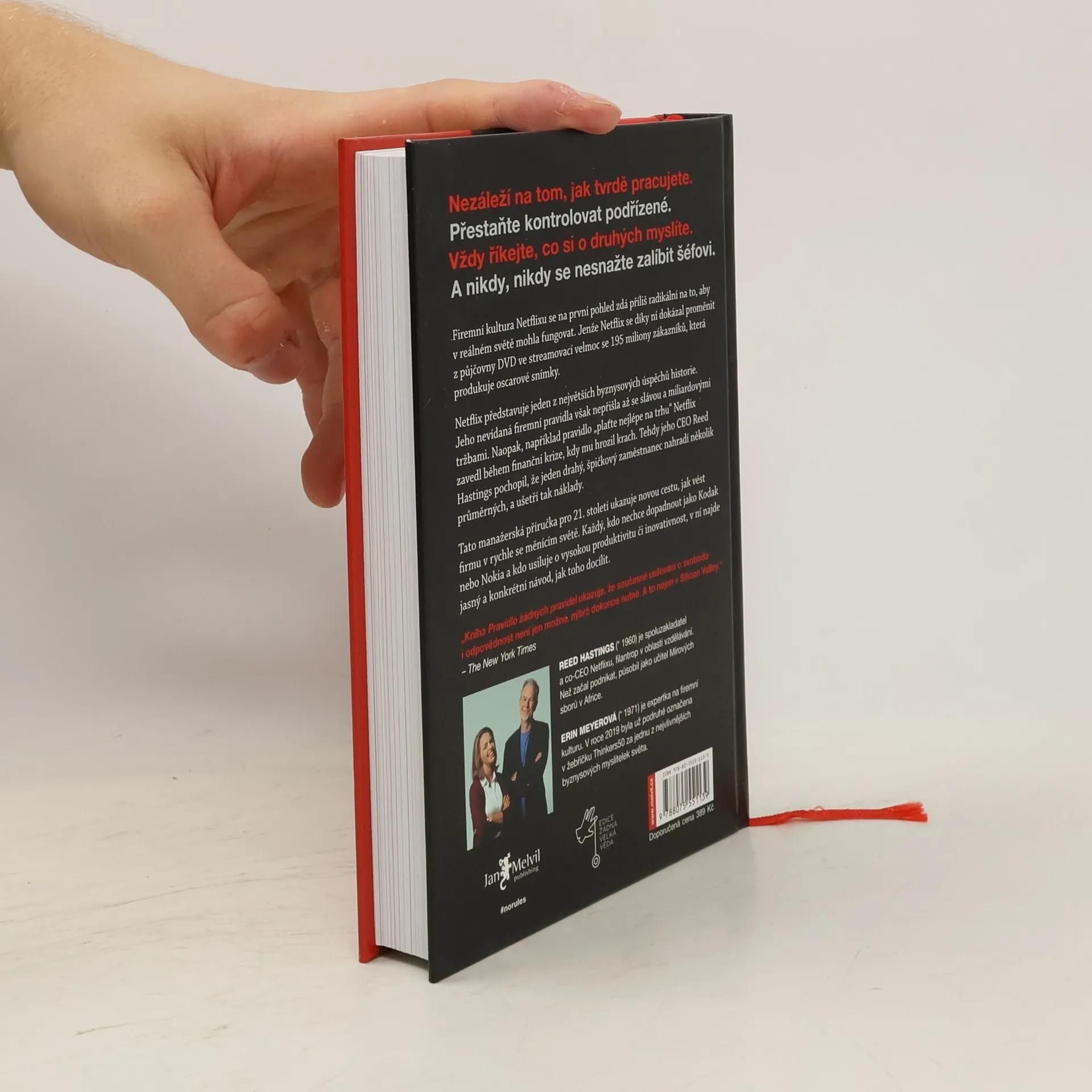 „Než přišel Netflix, nikdy předtím neexistovala společnost jako Netflix.“ Tato revoluční firma generuje miliardové roční příjmy a oslovuje stovky milionů lidí ve více než 190 zemích. Od svého vzniku v roce 1998, kdy začínala jako služba půjčování DVD, prošla Netflix mnoha změnami a prokázala velkou flexibilitu. Klíčovým faktorem úspěchu je kultura nastavená Reedem Hastingsem, která může na první pohled působit radikálně. Díky této kultuře zaměřené na svobodu a odpovědnost se Netflix dostal na vrchol. V tomto světovém bestselleru spoluzakladatel Hastings odhaluje vnitřní fungování Netflixu: jak nastavuje nové standardy, váží si lidí více než procesů, upřednostňuje inovace před efektivitou a zaměstnance nekontroluje. Neexistují žádná pravidla pro dovolenou ani výdaje. Zaměstnanci se nesnaží potěšit své nadřízené, ale poskytují upřímnou zpětnou vazbu. Tyto neobvyklé metody vedly k bezkonkurenční rychlosti inovací a Netflix se stal jednou z nejoblíbenějších značek na světě. Tato kniha je výbornou a čtivou byznysovou příručkou, která dramaticky proplétá historii Netflixu. Je určena pro ty, kdo vedou týmy, firmy, budují startupy nebo pracují v organizacích, které chtějí zlepšovat.