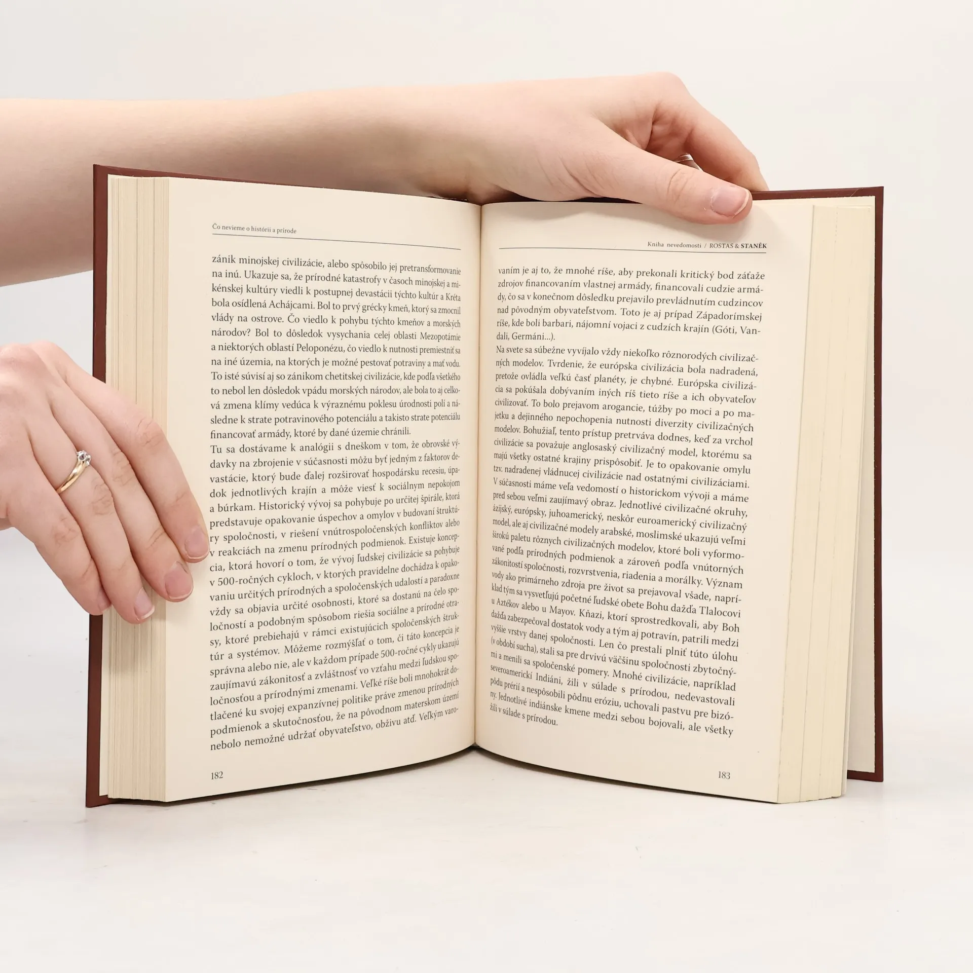 KNIHA NEVEDOMOSTI od profesora Petra Staněka a publicistu a spisovateľa Tibora Eliota Rostasa je rozdelená do šiestich výnimočných kapitol, v ktorých vám ponúkajú svoje názory obaja autori. Publikácia vrcholí pohľadom za oponu dynastického vládnutia, ktoré plánovane vyústilo do totality technokracie ako zániku doterajšieho usporiadania spoločnosti smerujúceho k postľudstvu a vytváraniu syntetických ľudí s využitím učiacej sa umelej inteligencie pod dozorom armád, spravodajských služieb a tajných spoločností. Všetky slobody smerujú k spoločnosti postavenej na centrálne presadzovaných podmienkach kultu vedeckej neomylnosti určujúcej povahu totálnej diktatúry.