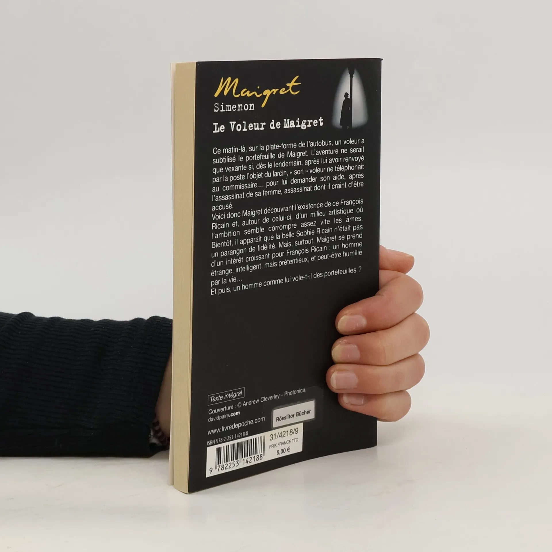 Ce matin-lA, sur la plate-forme de l'autobus, un voleur a subtilisA(c) le portefeuille de Maigret. L'aventure ne serait que vexante si, dA]s le lendemain, aprA]s lui avoir renvoyA(c) par la poste l'objet du larcin, A son A voleur ne tA(c)lA(c)phonait au commissaire... pour lui demander son aide, aprA]s l'assassinat de sa femme, assassinat dont il craint d'Aatre accusA(c). Voici donc Maigret dA(c)couvrant l'existence de ce FranAois Ricain et, autour de celui-ci, d'un milieu artistique oA l'ambition semble corrompre assez vite les A mes. BientAt, il apparaA(R)t que la belle Sophie Ricain n'A(c)tait pas un parangon de fidA(c)litA(c). Mais, surtout, Maigret se prend d'un intA(c)rAat croissant pour FranAois Ricain: un homme A(c)trange, intelligent, mais prA(c)tentieux, et peut-Aatre humiliA(c) par la vie... Et puis, un homme comme lui vole-t-il des portefeuilles ?