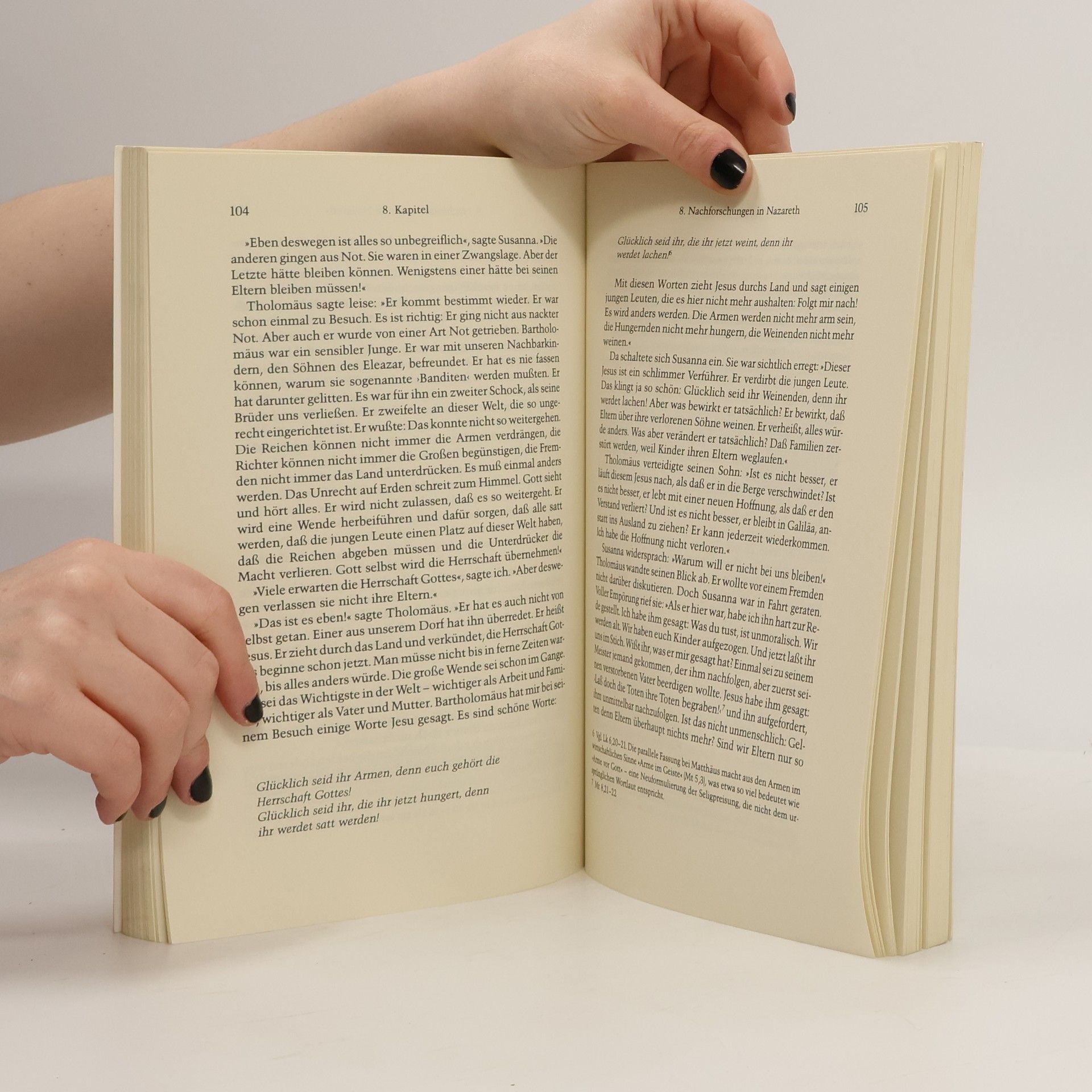 Gerd Theißen erzählt von Jesus und seiner Zeit. Die Rahmenhandlung ist fiktiv: Ein junger Jude, Andreas, wird von Pilatus dazu erpresst, Material über neue religiöse Bewegungen in Palästina zu sammeln. Dabei stößt er auf Jesus und reist ihm hinterher. Aus Erzählungen über Jesus rekonstruiert er dessen Leben. Theißen ist ein fesselndes Buch gelungen, das dem Stand der Forschung entspricht, aber auch für die Gegenwart verständlich ist. Verkündigung und Geschick Jesu werden aus der Perspektive eines jüdischen Zeitgenossen dargestellt und im Rahmen der religiösen und sozialen Welt des Judentums verständlich gemacht.