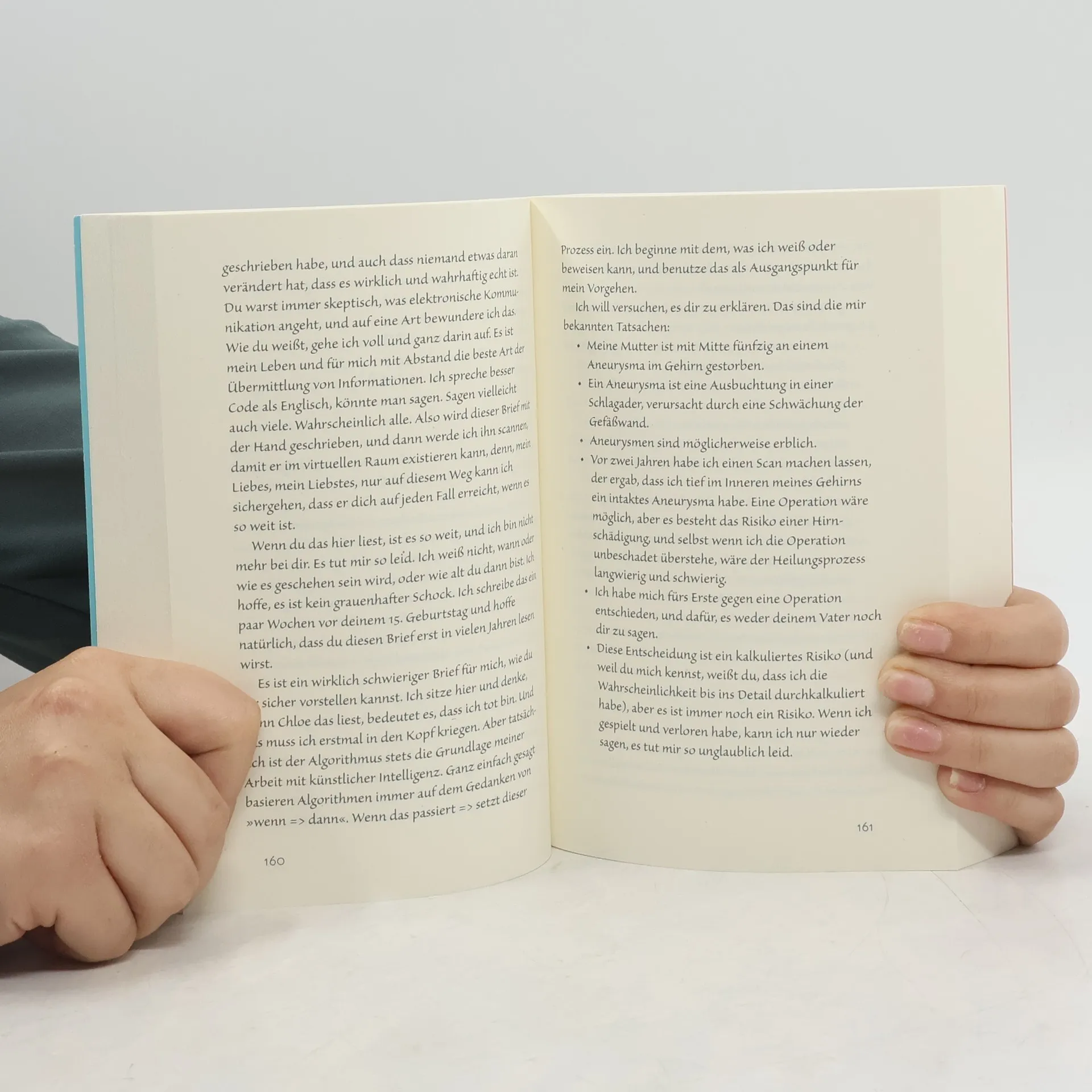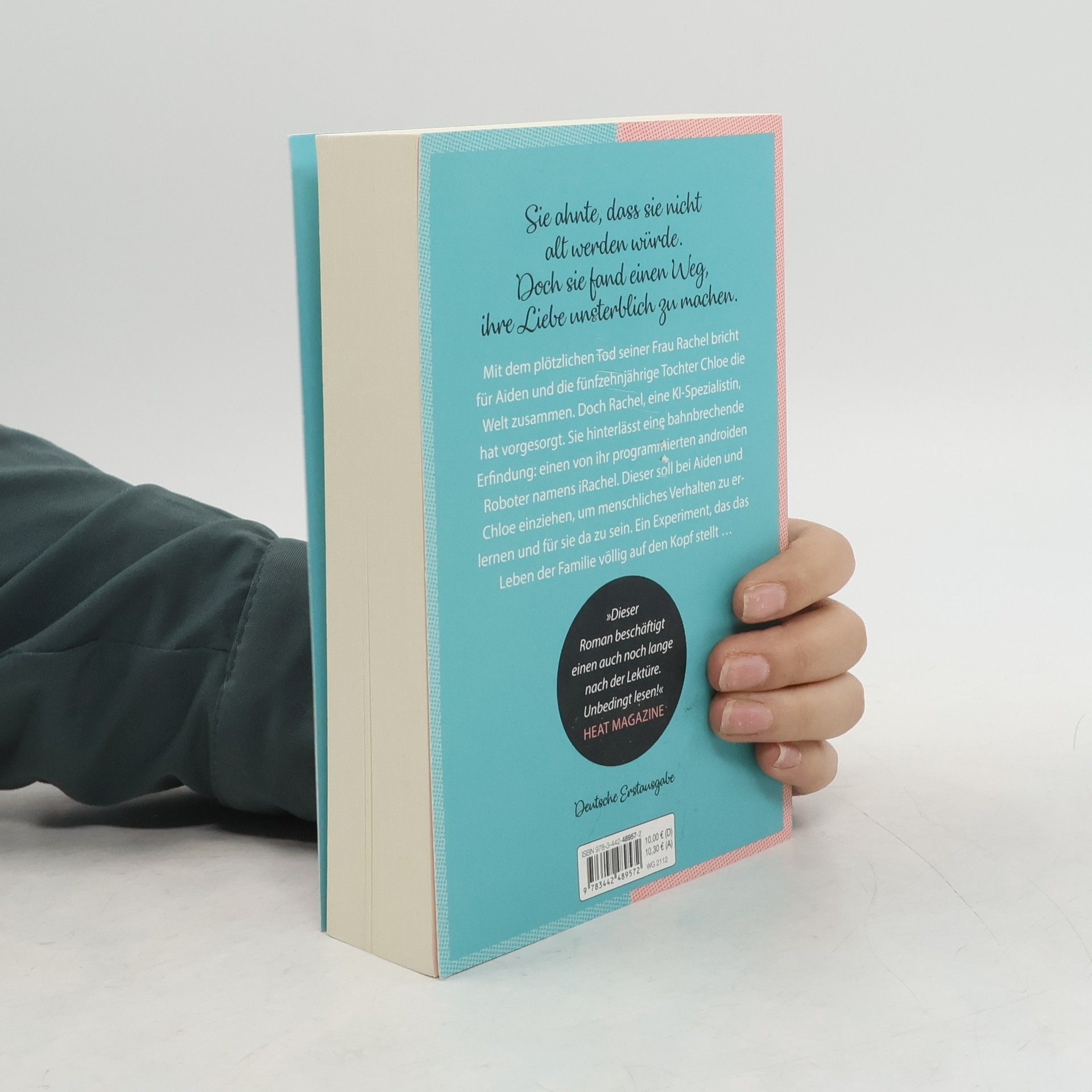»Sie ist für dich da. Aber sie ist kein Mensch.« Mit dem Tod seiner Frau Rachel bricht für Aiden Sawyer die Welt zusammen. Trotz allem muss er sich um seine fünfzehnjährige Tochter Chloe kümmern, die den Verlust der Mutter nur schwer verkraftet. Doch Rachel, eine geniale Forscherin auf dem Gebiet der künstlichen Intelligenz, hat vorgesorgt. Sie hinterließ eine bahnbrechende Erfindung: ein mit ihrem Wissen und ihren Erinnerungen programmierter Roboter namens iRachel. Dieser soll, so hat es Rachel verfügt, bei den Sawyers einziehen, um menschliches Verhalten zu erlernen und für Aiden und Chloe dazusein. Ein Experiment, das das Leben der Familie völlig auf den Kopf stellt.