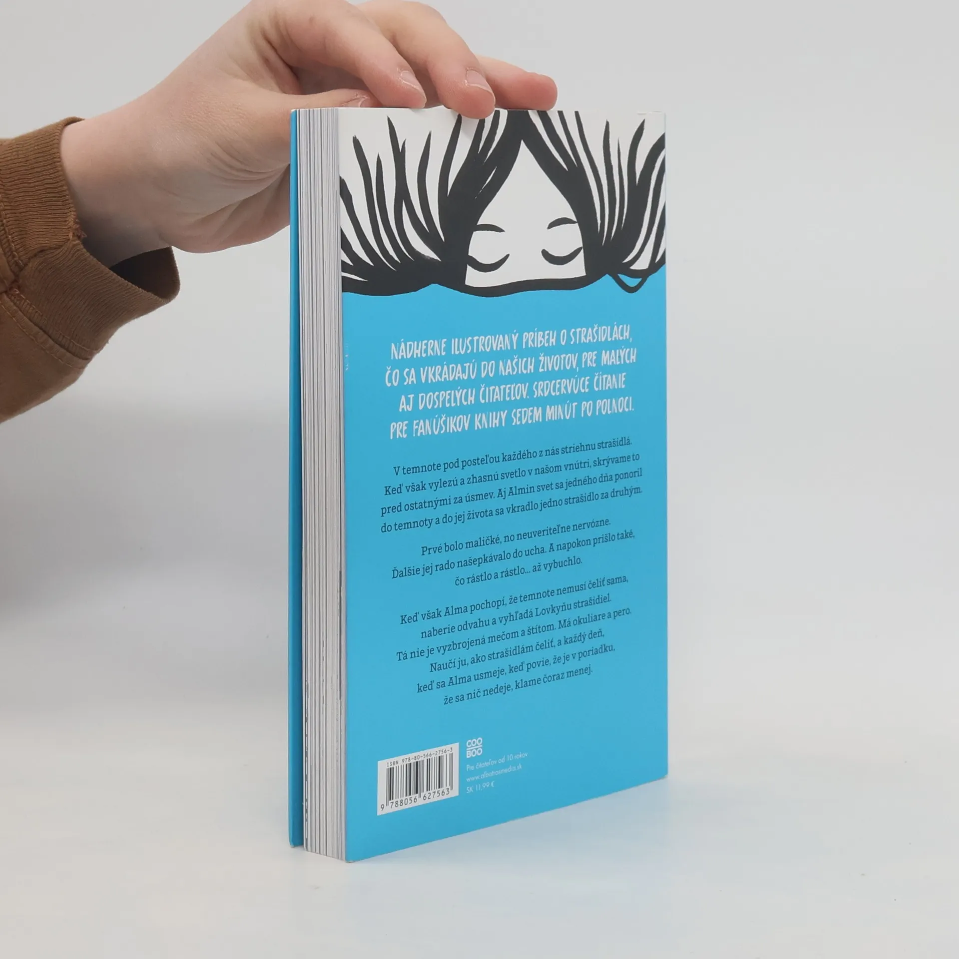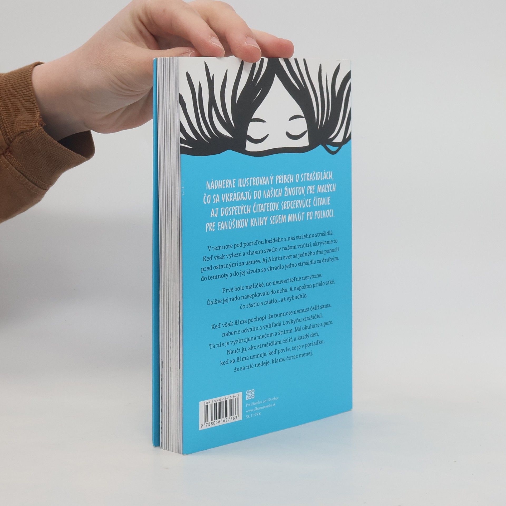 Silná a povzbudivá kniha o duševnom zdraví pre mladých... Nádherne ilustrovaný príbeh pre malých aj veľkých čitateľov o strašidlách, ktoré sa vkrádajú do našich životov. Srdcervúce čítanie pre fanúšikov knihy Sedem minút po polnoci. V temnote pod posteľou každého z nás striehnu strašidlá. Keď však vylezú a zhasnú svetlo v našom vnútri, skrývame to pred ostatnými za úsmev. Aj Almin svet sa jedného dňa ponoril do temnoty a do jej života sa vkradlo jedno strašidlo za druhým. Prvé bolo maličké, no neuveriteľne nervózne. Ďalšie jej rado šepkalo do ucha. A napokon prišlo také, čo rástlo a rástlo... až vybuchlo. Keď však Alma pochopí, že temnote nemusí čeliť sama, naberie odvahu a vyhľadá Lovkyňu strašidiel. Tá nie je vyzbrojená mečom a štítom. Jej zbraňami sú okuliare a pero. Naučí Almu, ako strašidlám čeliť, a každý deň, keď sa Alma usmeje, keď povie, že je v poriadku, že sa nič nedeje, klame čoraz menej.