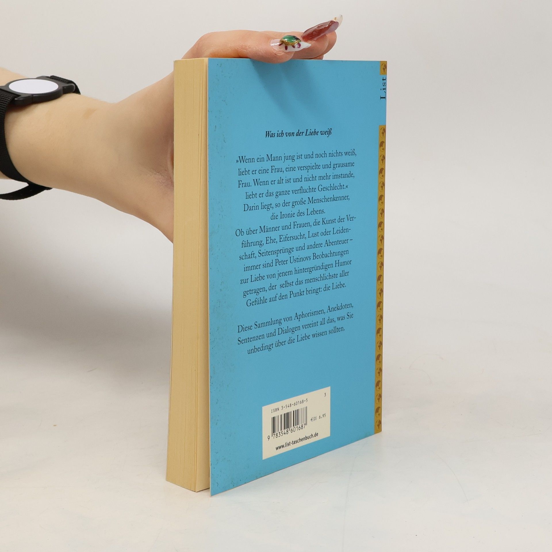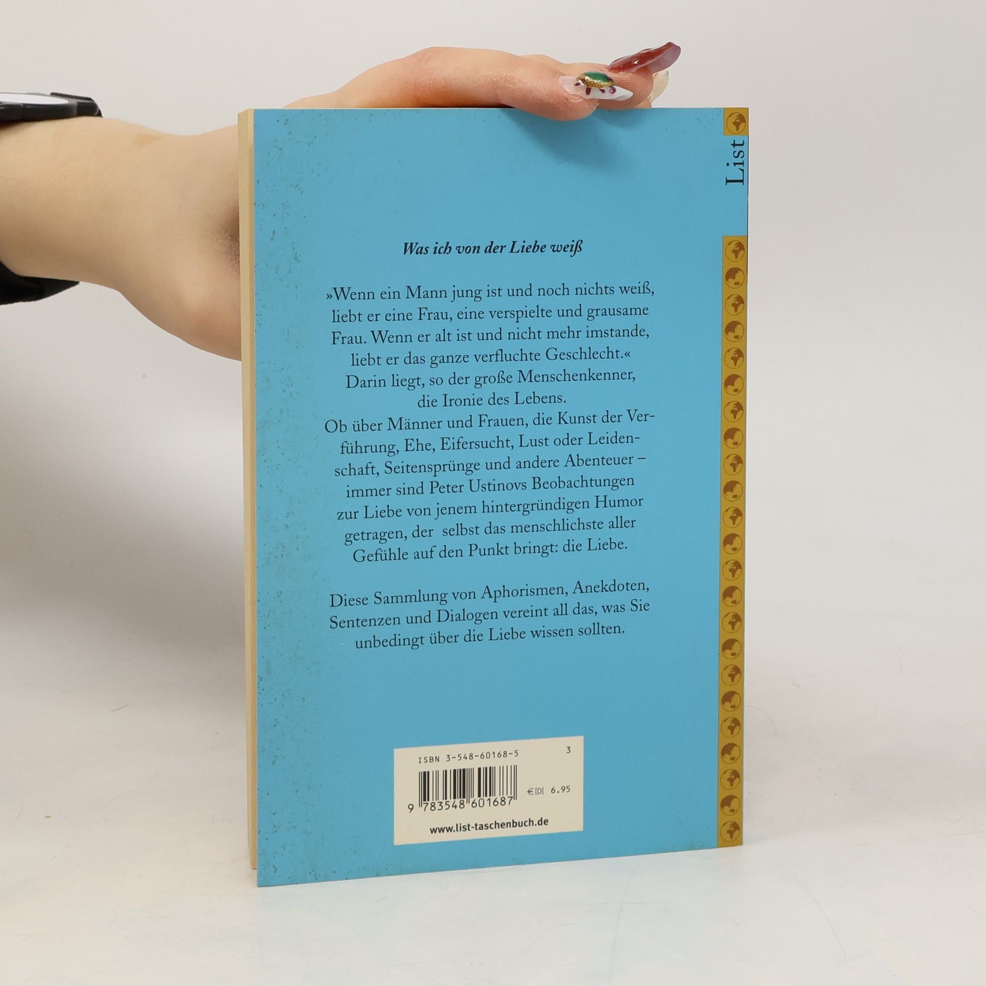 'Wenn ein Mann jung ist und noch nichts weiß, liebt er eine Frau, eine verspielte und grausame Frau. Wenn er alt ist und nicht mehr imstande, liebt er das ganze verfluchte Geschlecht.'Darin liegt, so der große Menschenkenner, die Ironie des Lebens.Ob über Männer und Frauen, die Kunst der Verführung, Ehe, Eifersucht, Lust oder Leidenschaft, Seitensprünge und andere Abenteuer - immer sind Peter Ustinovs Beobachtungen zur Liebe von jenem hintergründigen Humor getragen, der selbst das menschlichste aller Gefühle auf den Punkt bringt: die Liebe.Diese Sammlung von Aphorismen, Anekdoten, Sentenzen und Dialogen vereint all das, was Sie unbedingt über die Liebe wissen sollten.'