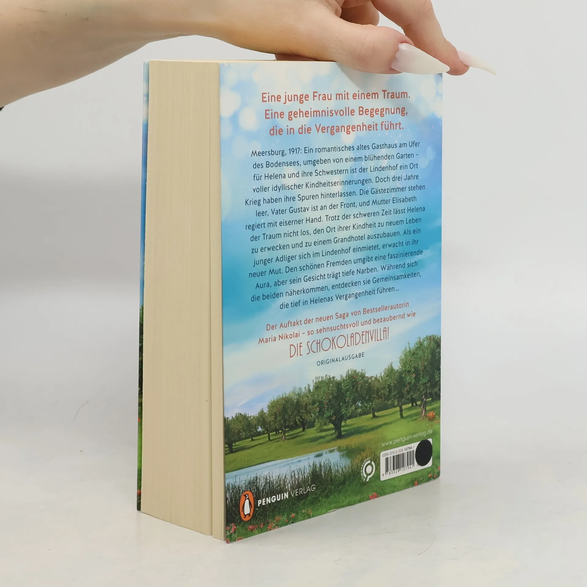 Nach »Die Schokoladenvilla«: Die neue historische Saga von Maria Nikolai! DREI SCHWESTERN DREI LEIDENSCHAFTEN EINE HEIMAT AM BODENSEE Meersburg, 1917: Ein romantisches altes Gasthaus am Ufer des Bodensees, umgeben von einem traumhaften Garten – für Helena Lindner und ihre Schwestern ist der Lindenhof ein Ort voller idyllischer Kindheitserinnerungen. Doch drei Jahre Krieg haben ihre Spuren hinterlassen. Die Gästezimmer stehen leer, Vater Gustav ist an der Front, und Mutter Elisabeth regiert mit eiserner Hand. Trotz der schweren Zeit lässt Helena der Traum nicht los, den Ort ihrer Kindheit zu neuem Leben zu erwecken und zu einem Grandhotel auszubauen. Als ein junger Adliger sich im Lindenhof einmietet, erwacht in ihr neuer Mut. Den schönen Fremden umgibt eine faszinierende Aura, aber sein Gesicht trägt tiefe Narben. Während sich die beiden näherkommen, entdecken sie Gemeinsamkeiten, die tief in Helenas Vergangenheit führen … Der Auftakt der neuen Saga von Bestsellerautorin Maria Nikolai – so genussvoll und bezaubernd wie »Die Schokoladenvilla«! In hochwertig veredelter Romance-Ausstattung, mit zwei leckeren Kuchenrezepten im Innenteil.